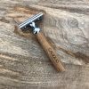 Le rasoir de sûreté peut avoir plusieurs types de manche (bois, acier, corne) mais a toujours une tête en acier et est compatible avec des lames « standards ».