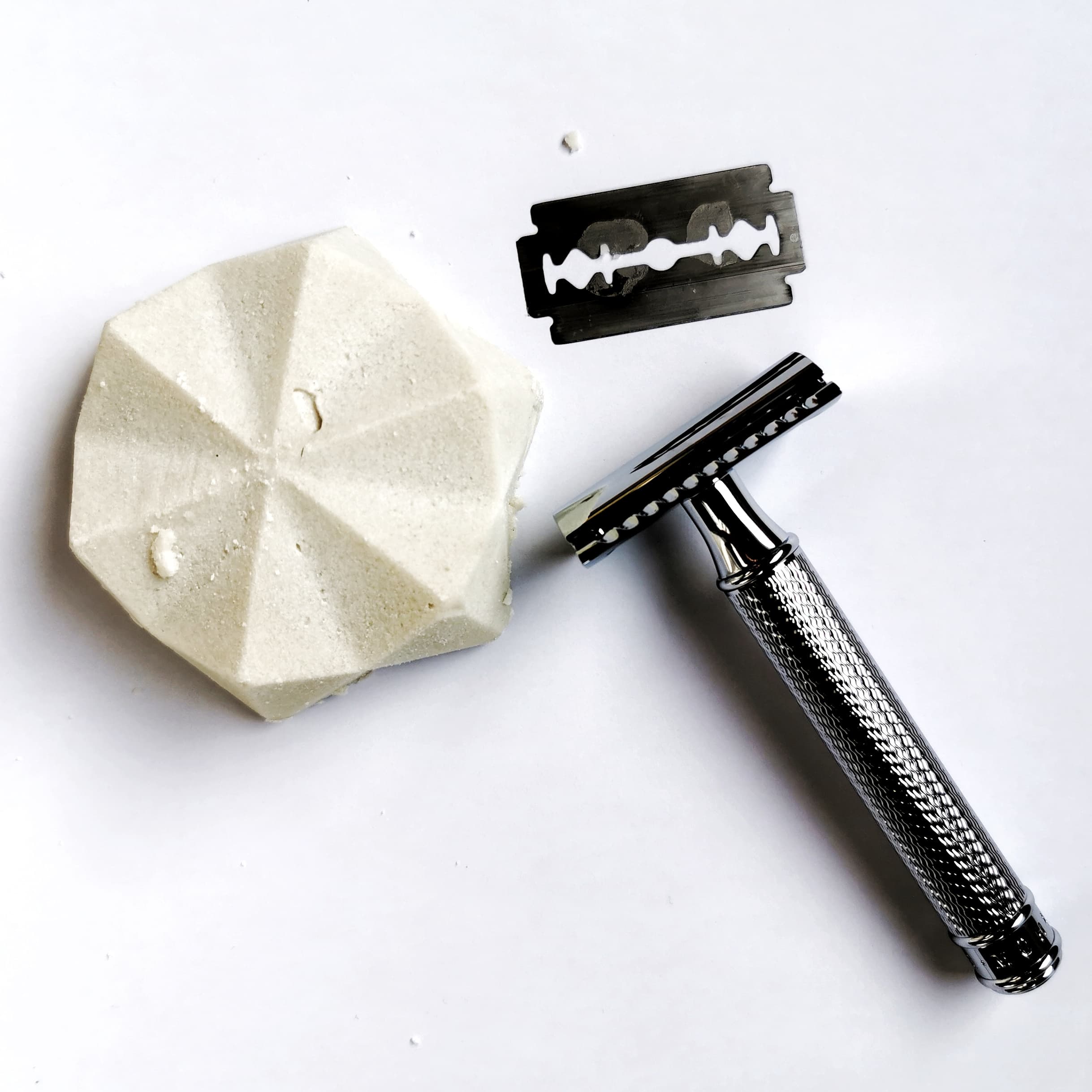 - Humidifiez votre peau à l’eau tiède et faite bien mousser votre pain de rasage, à l’aide d’un blaireau pour le visage – où simplement avec les mains pour les jambes, les aisselles etc.