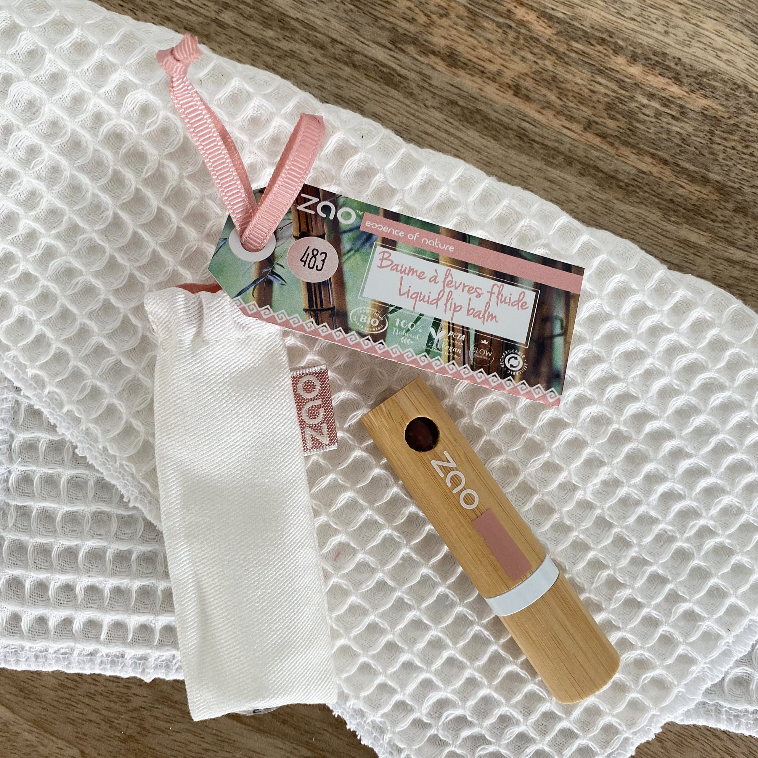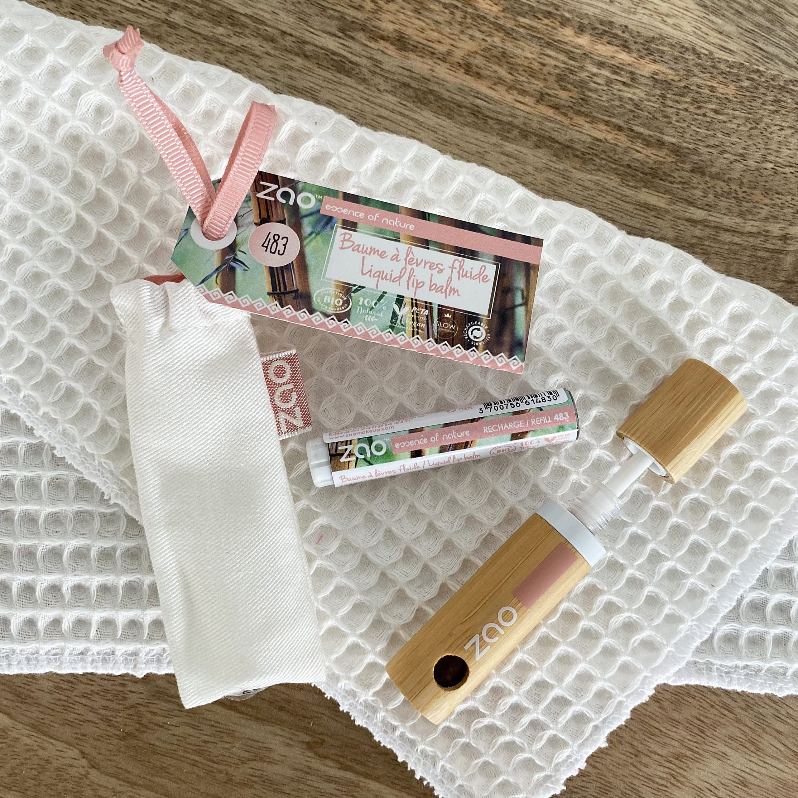 Le baume à lèvres fluide Zao, à la texture voile, protège contre les agressions extérieures grâce à l’huile de ricin bio et au beurre de cacao bio.