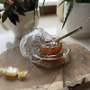 Il est composé d’une coupelle transparente et d’une cloche avec trois abeilles en relief.