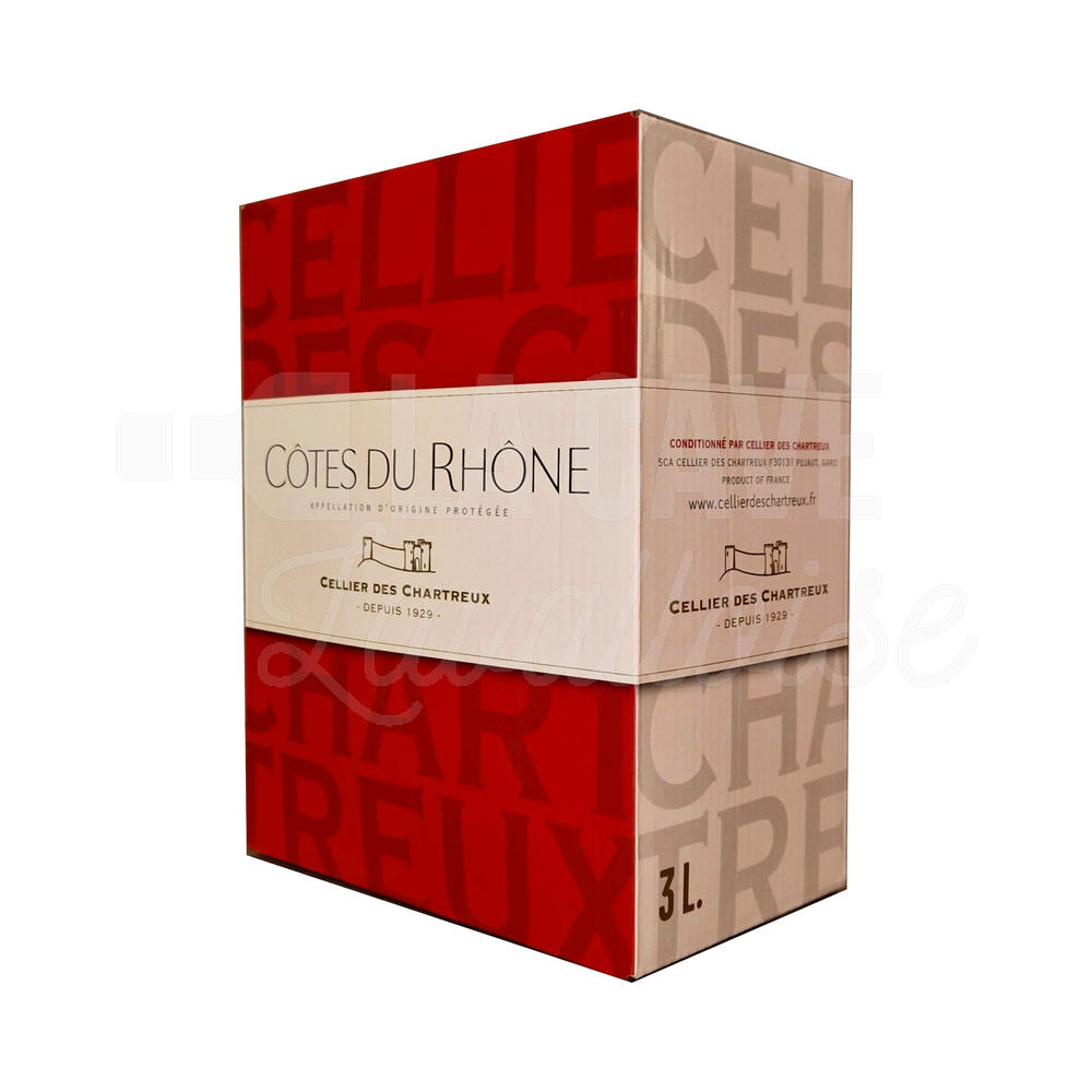 Vin grenat, pour ce Côtes-du-Rhône rouge du Cellier des Chartreux. Notes de fruits noirs confiturés, cerise, réglisse et épices.