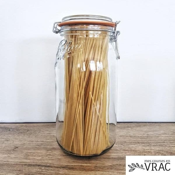 MULTI-USAGES : Les bocaux le parfait SUPER sont conçus pour la réalisation de conserves principalement. Chez Mes courses en vrac, nous les utilisons également pour conserver les aliments au quotidien. Pour cela, pas besoin de changer la rondelle à chaque utilisation. Le bocal n’est pas aussi hermétique qu’une conserve mais il fait largement l’affaire pour la conservation de produits secs comme des pâtes.