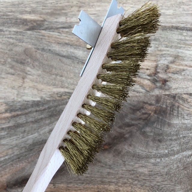 Eliminez facilement les résidus de vos grilles de barbecue avec la brosse en fils de laiton et son grattoir.
