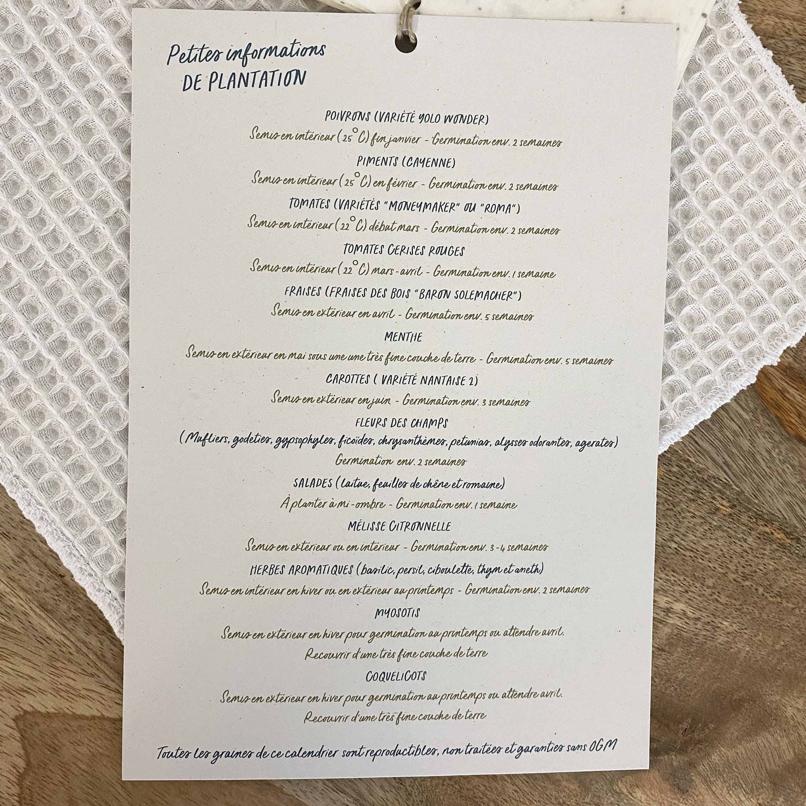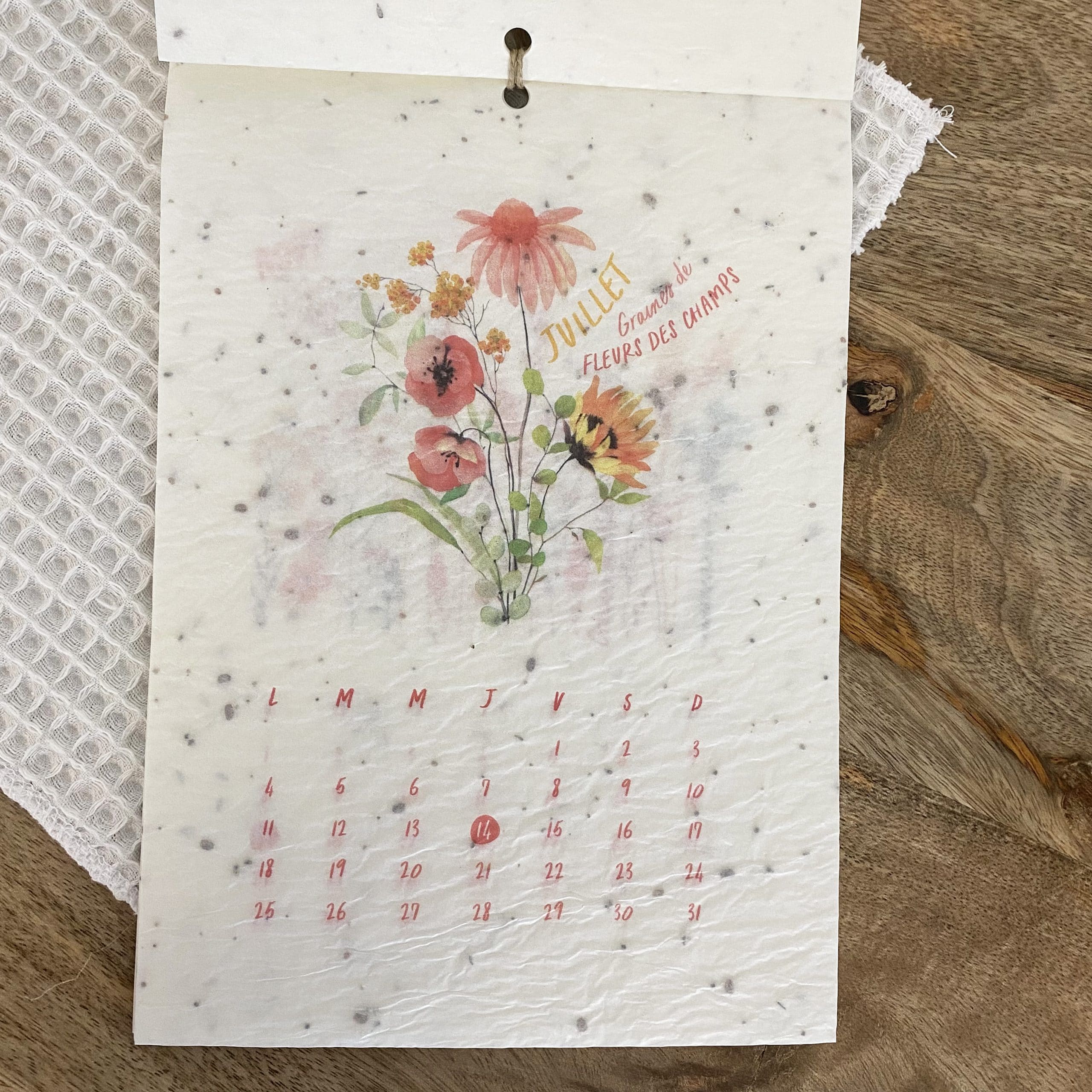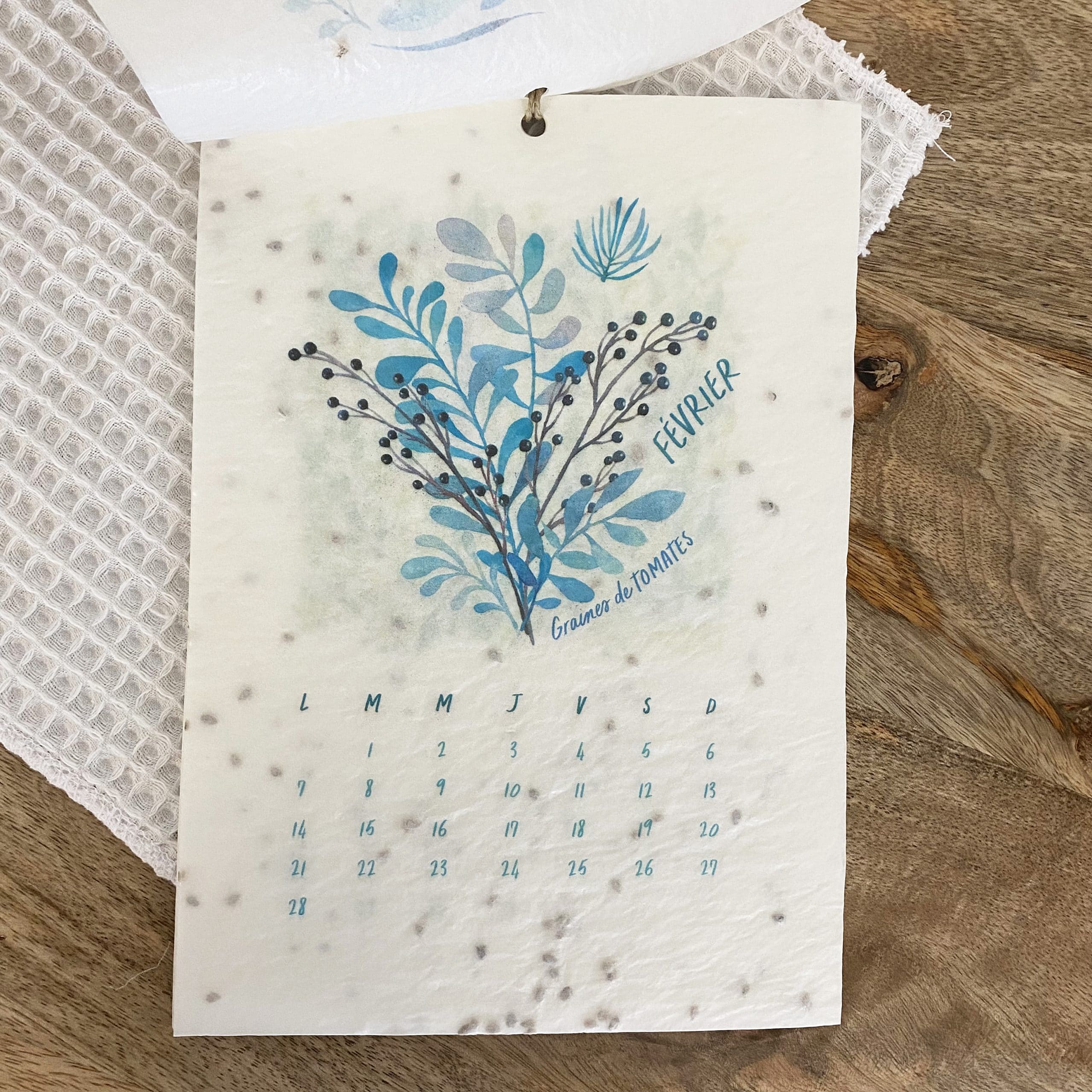 Calendrier à planter en papier 100 % coton avec semences incorporées illustré avec délicatesse.