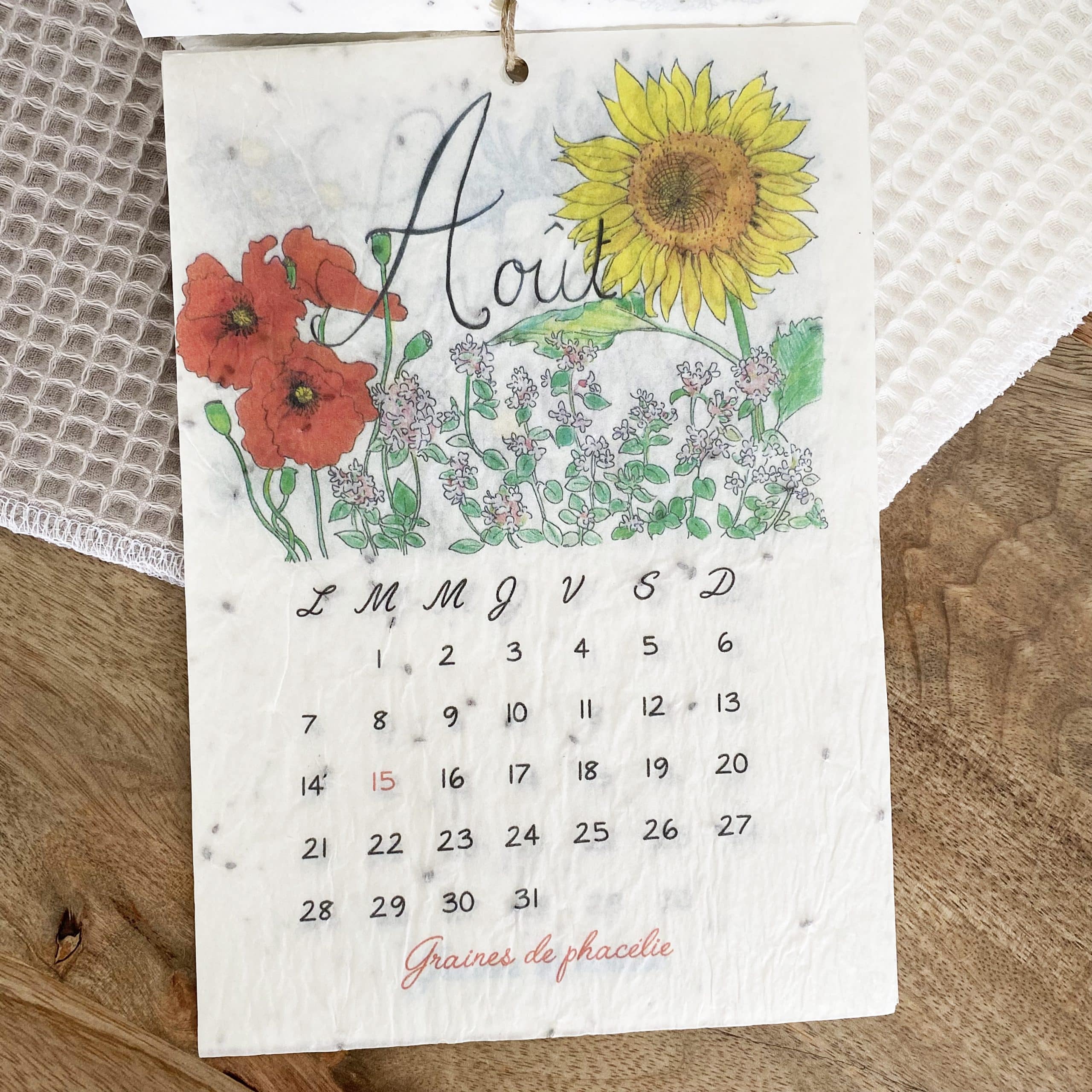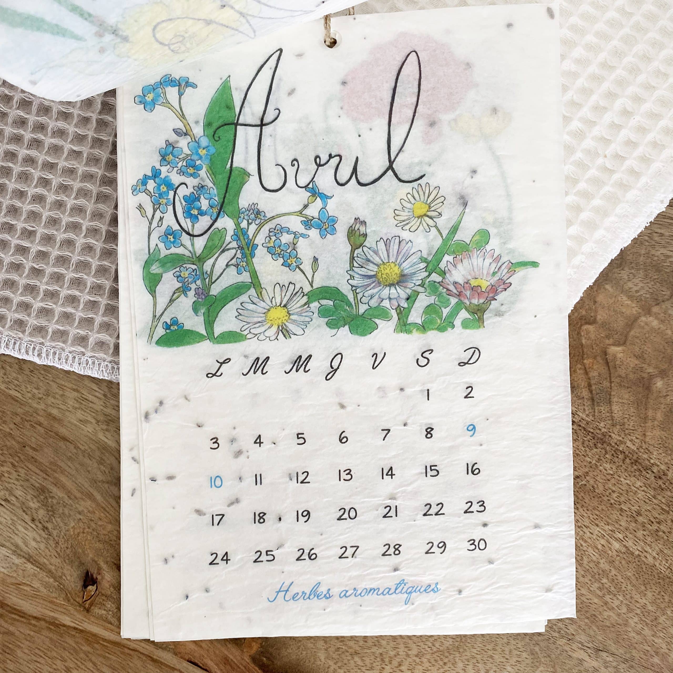Calendrier à planter en papier 100 % coton avec semences incorporées illustré avec délicatesse.
