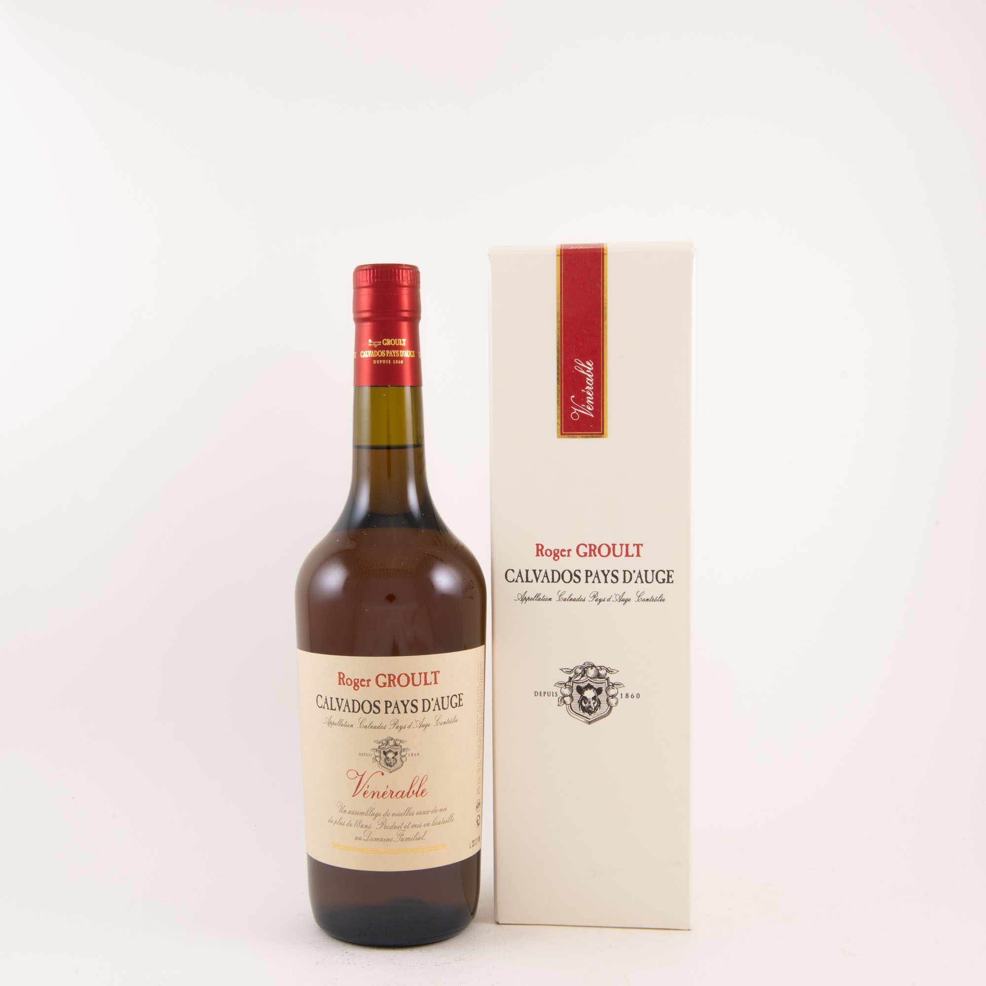 Le Vénérable Roger Groult, calvados pays d’Auge AOC, a vieilli au moins 18 ans. Son bel orange cuivré en atteste. Nez épice, bouche bien nette avec une finesse extrême, c’est le grand classique de la Maison.