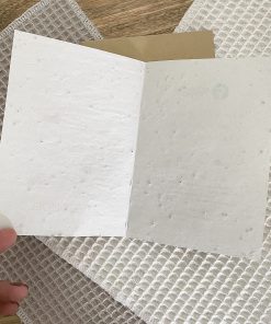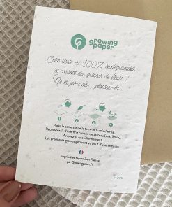 Cette carte est constituée de pâte de papier parsemée de graines de façon à pouvoir la planter et obtenir de jolies fleurs des champs : parfaite pour une année zéro déchet
