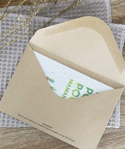 - Enveloppe kraft (Les enveloppes qui les accompagnent sont 100% françaises. Leur empreinte carbone est négative car elles absorbent plus de gaz à effet de serre qu’elles n’en produisent.)