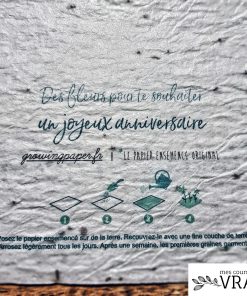 Cette carte est constituée de pâte de papier parsemée de graines de façon à pouvoir la planter et obtenir de jolies fleurs des champs : parfaite pour anniversaire zéro-déchet.