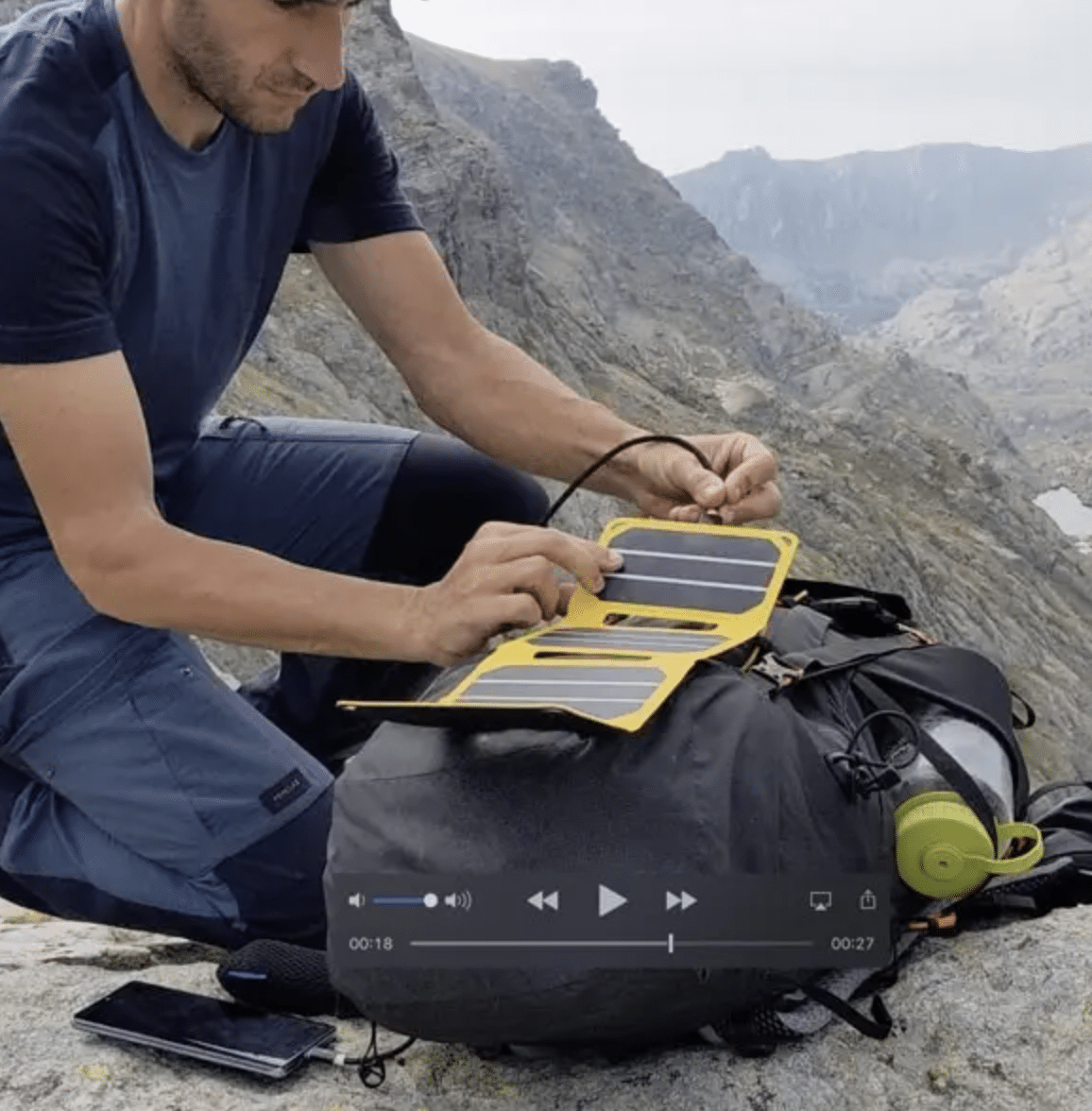 – Si le temps est couvert : l’utilisation d’une batterie powerbank (batterie tampon entre la chargeur solaire et l’appareil) est nécessaire.
