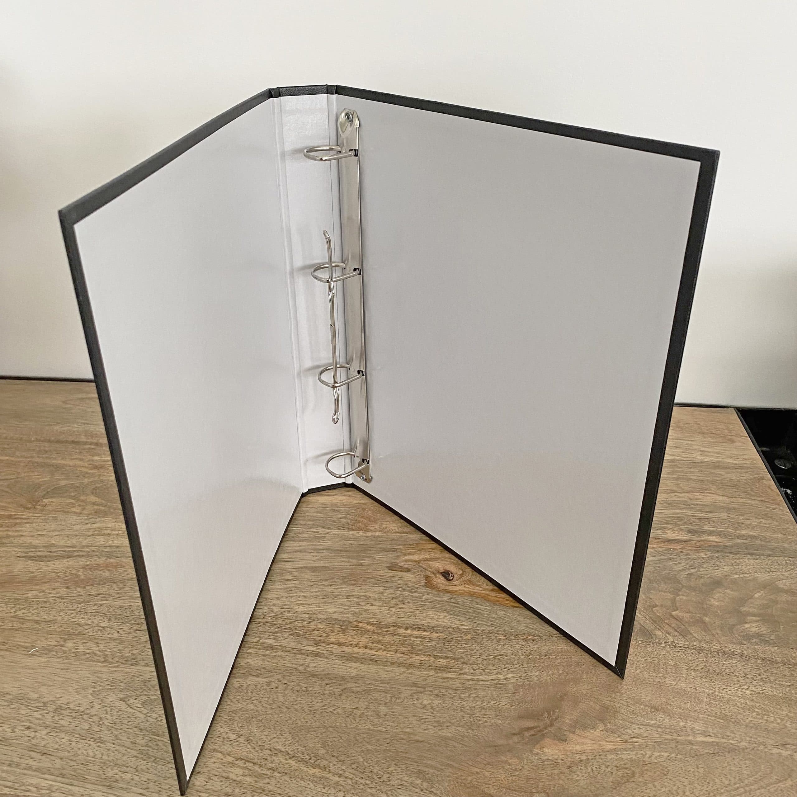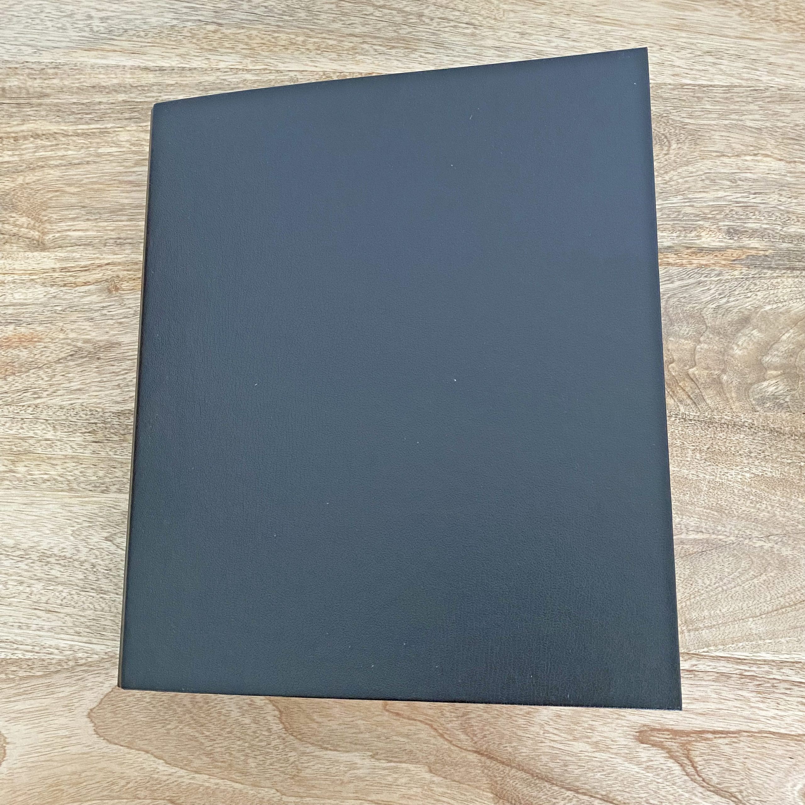 SIMPLE : Le classeur a un revêtement sobre noir. Minimaliste, il rempli sa fonction : classer des feuilles.