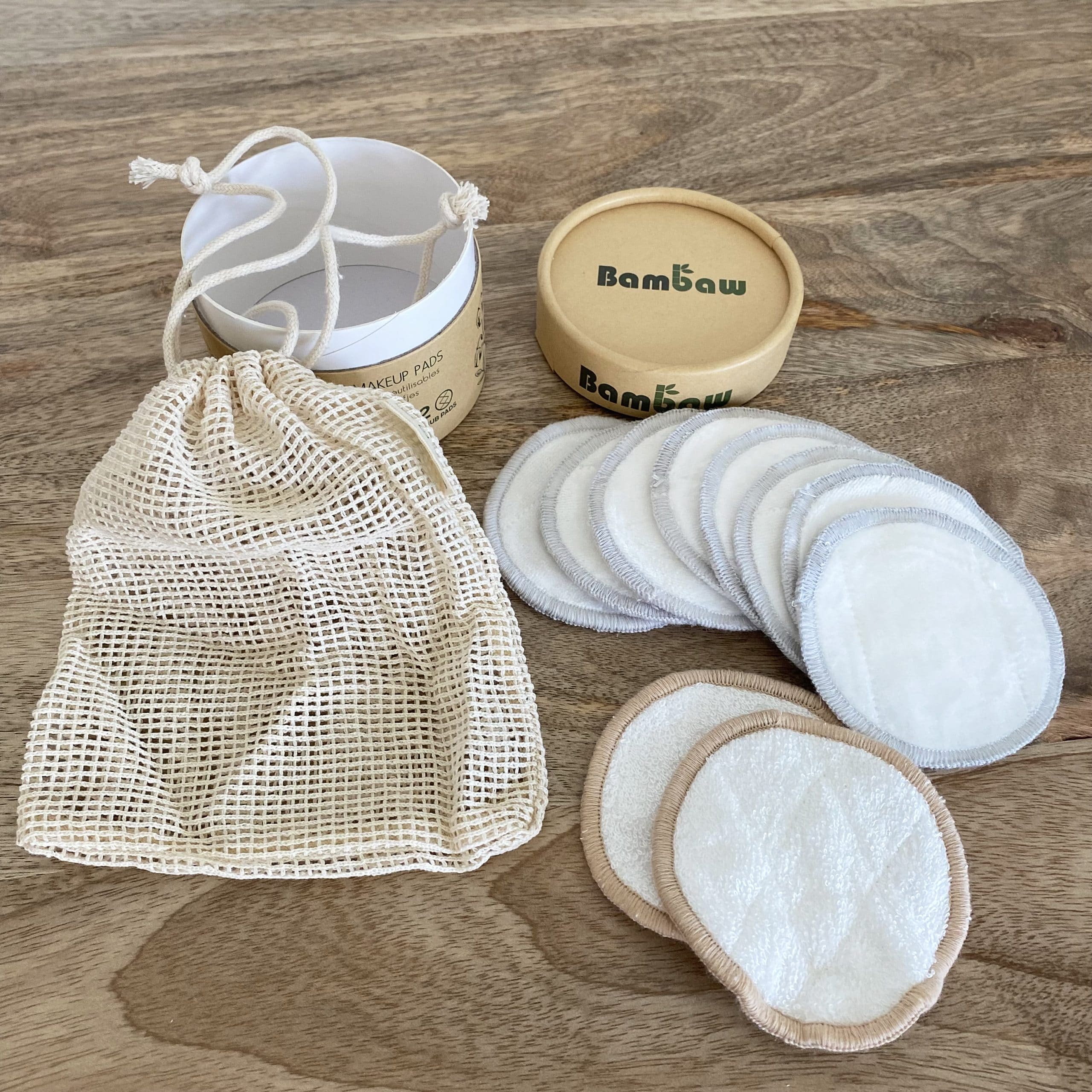 RÉUTILISABLES : les disques démaquillants en bambou sont lavables. Une fois qu’ils sont utilisés, déposez-les dans leur filet de lavage et passez-les en machine à 30°.