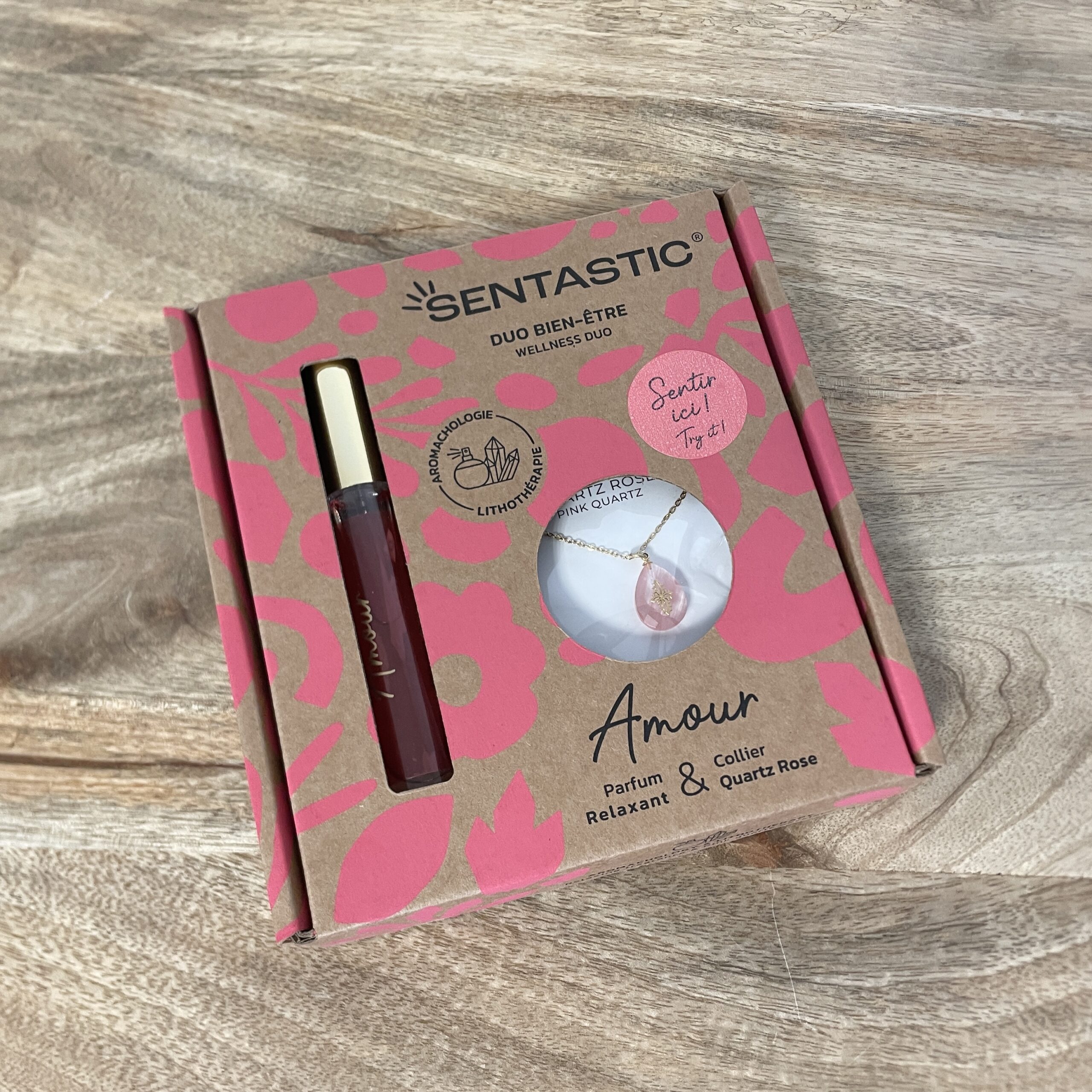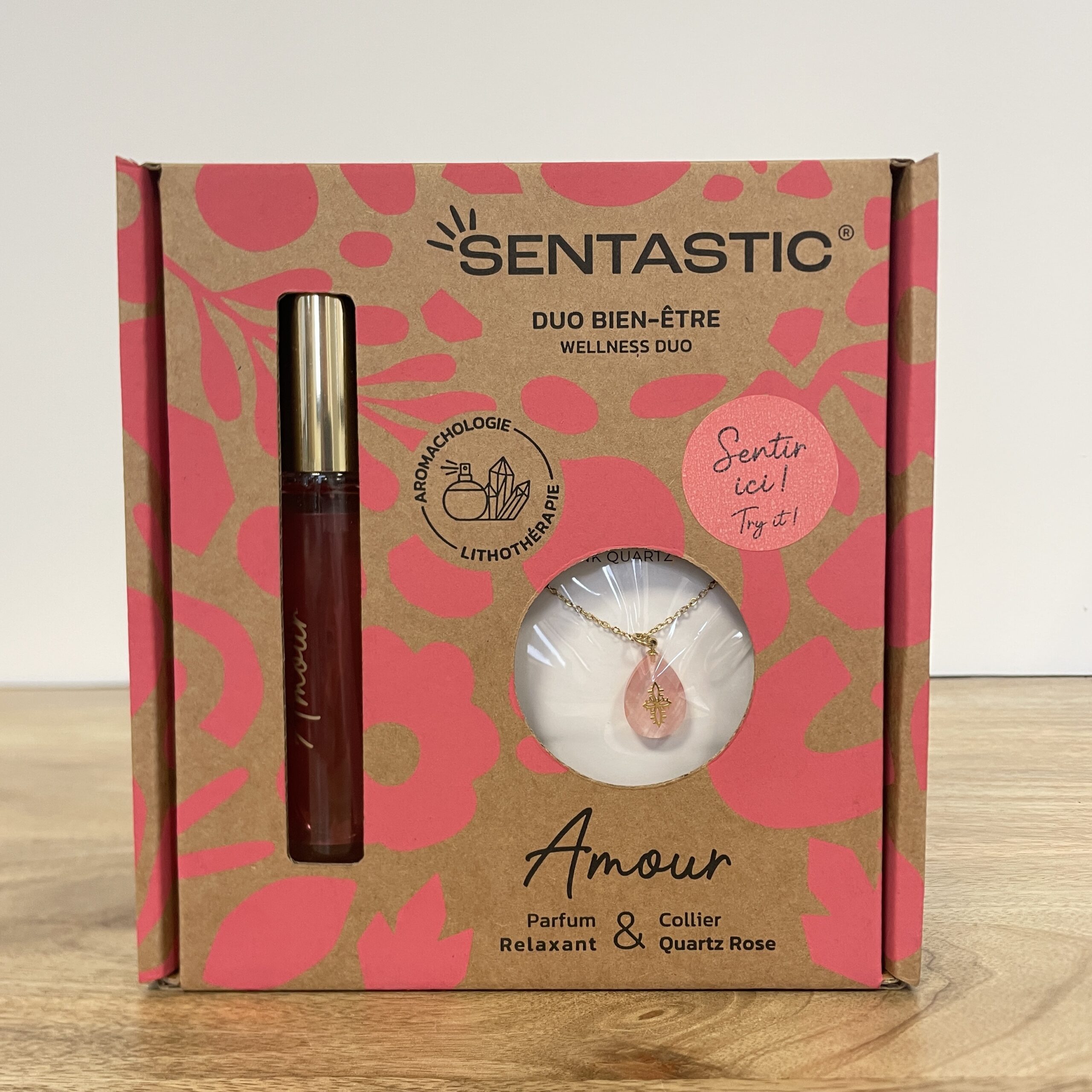 Offrez-vous un moment de pure douceur avec le coffret parfum & pierre naturelle SENTASTIC amour. Véritable ode à la tendresse, ce parfum envoûtant dévoile un sillage floral et chypré, où la délicatesse de la rose et du jasmin s’entrelace avec la chaleur de la vanille et du santal. Conçu pour apaiser l’esprit et éveiller les émotions, il s’accompagne d’un collier en quartz rose, pierre du cœur symbolisant l’amour, la bienveillance et la sérénité. Une alchimie sensorielle parfaite pour cultiver le bien-être et la gratitude au quotidien.