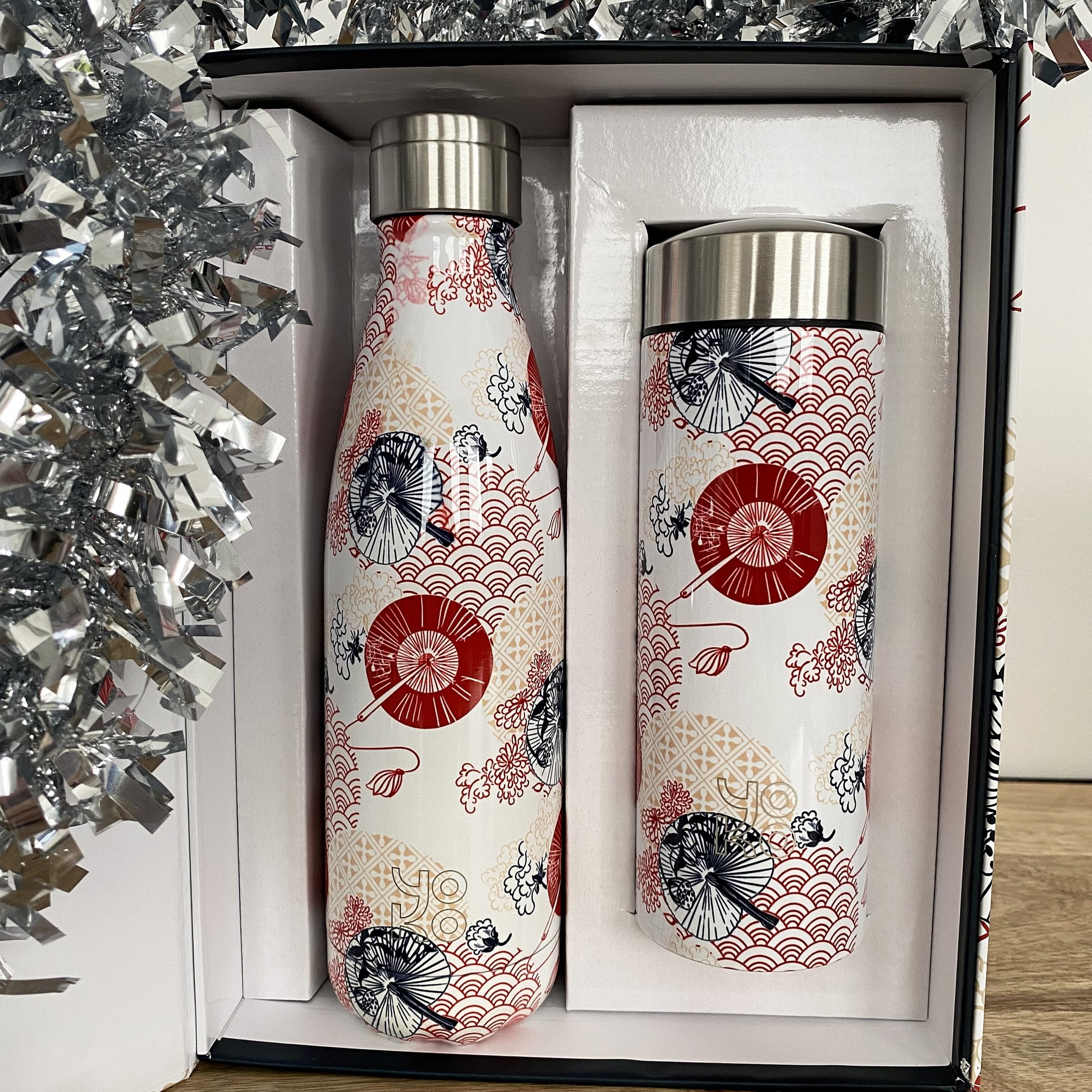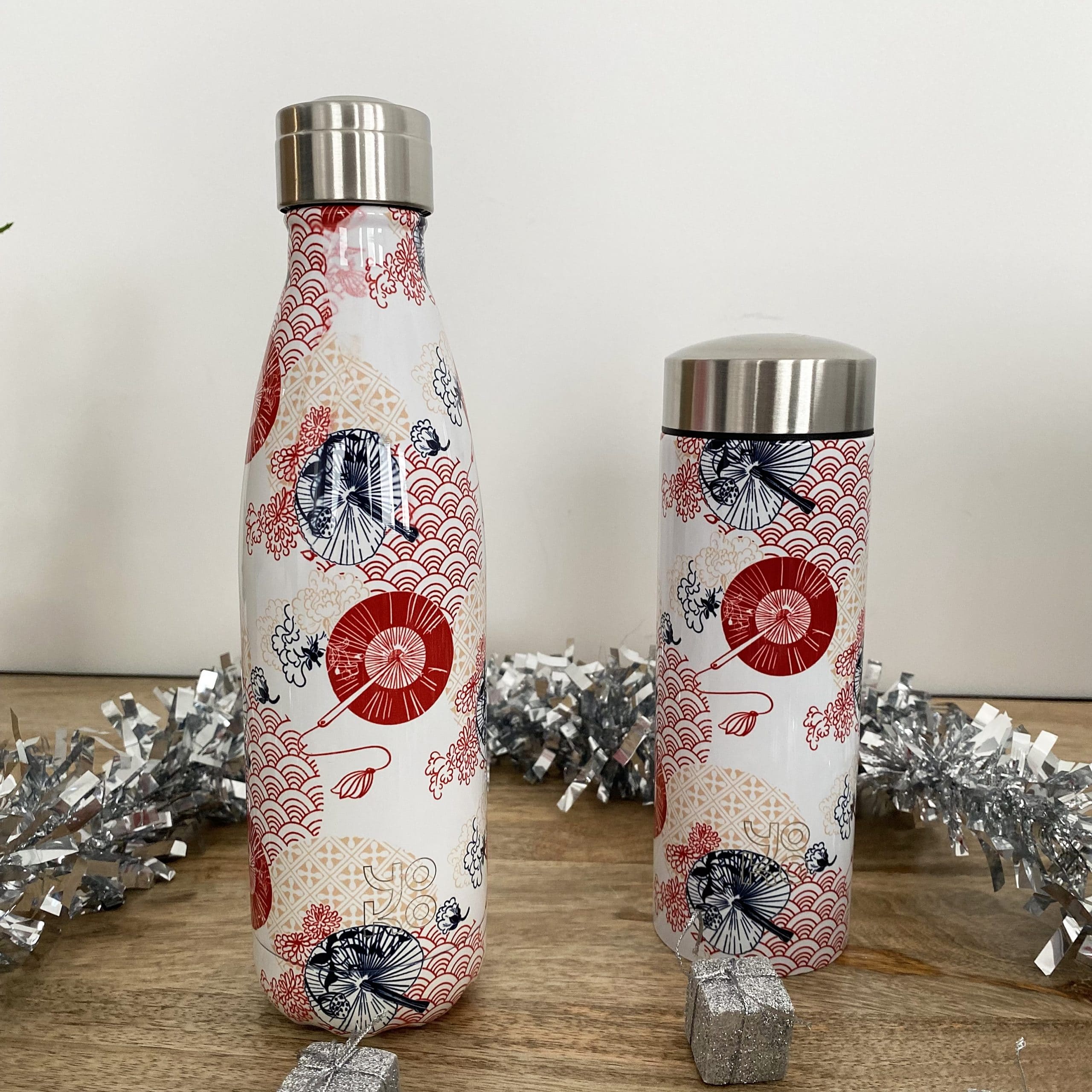 Le duo gourde et théière en acier inoxydable est très  pratique et léger à transporter.