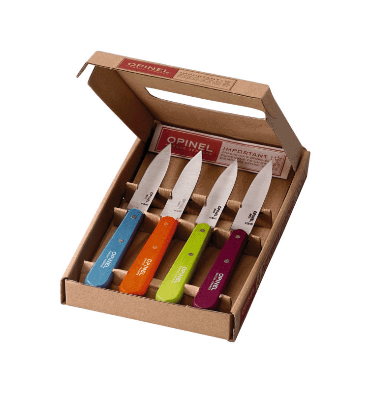 Cette boite de 4 pièces OPINEL contient 4 couteaux d’office de différentes couleurs. Polyvalents, ces couteaux seront vos essentiels cuisine !