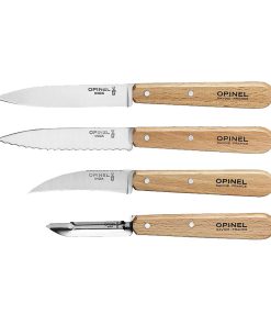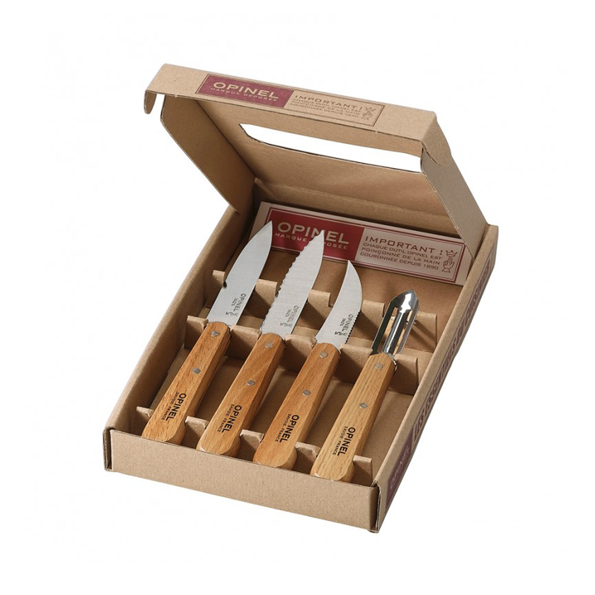 Cette boite de 4 pièces OPINEL en hêtre contient 3 couteaux de cuisine et 1 éplucheur.