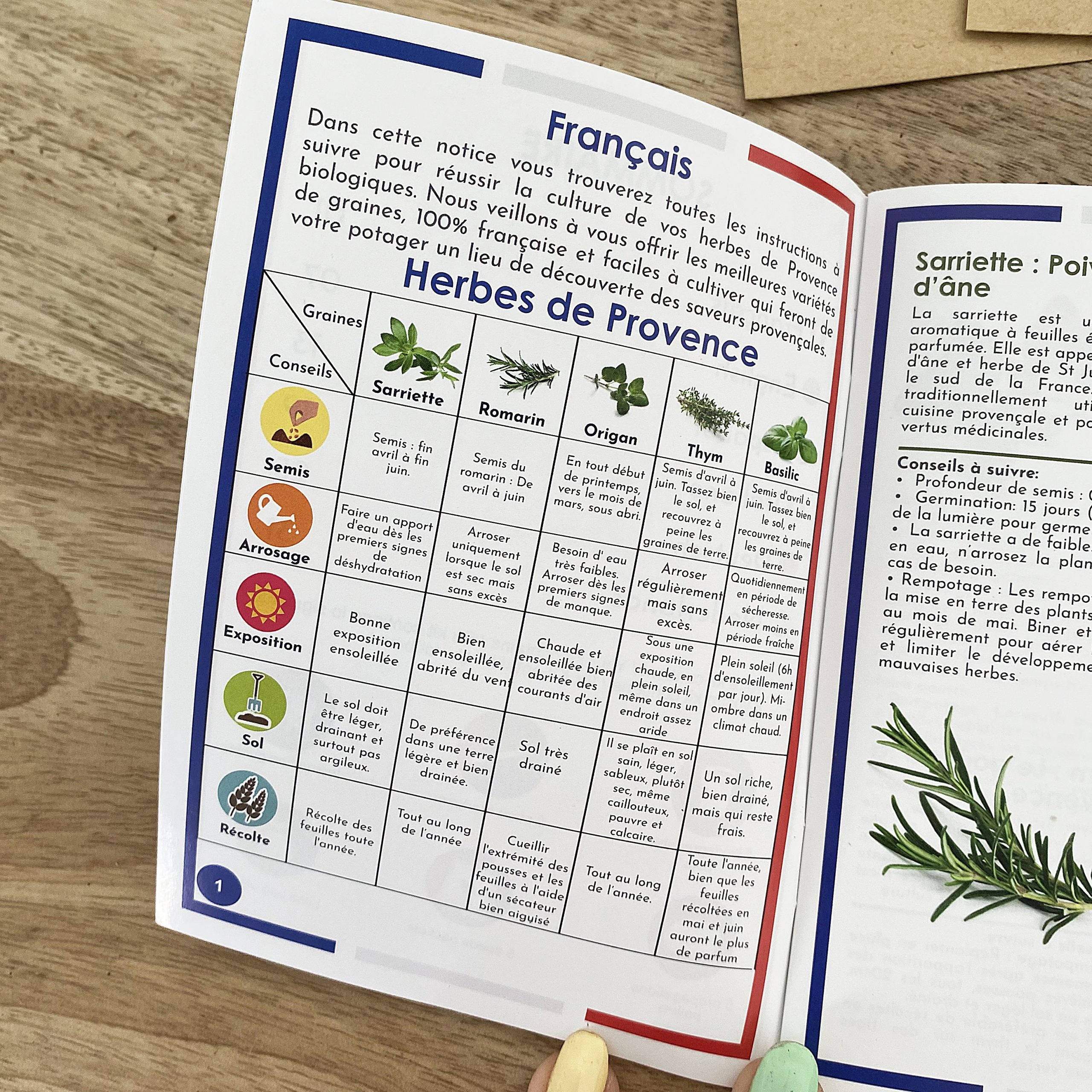 Un petit livret sur l’origine de chaque légume et herbe, comment le cultiver et comment le cuisiner avec une recette est également à retrouver dans le coffret.