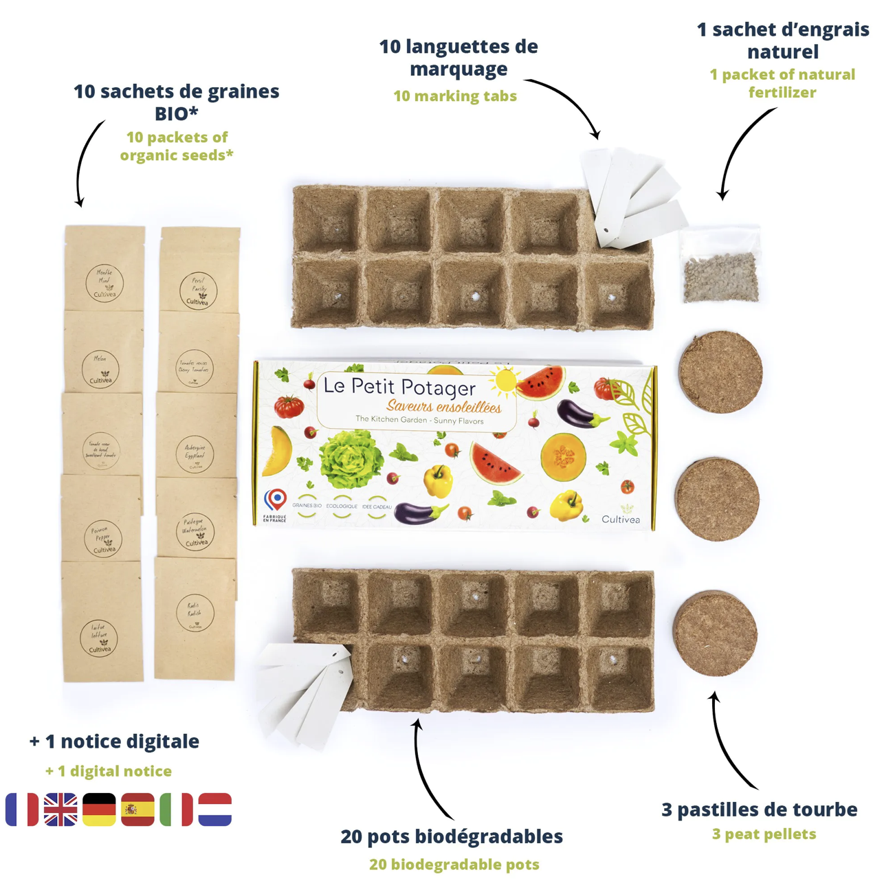 Qu’est ce que je retrouve dans mon Coffret : Le Petit Potager Saveurs ensoleillées BIO ?