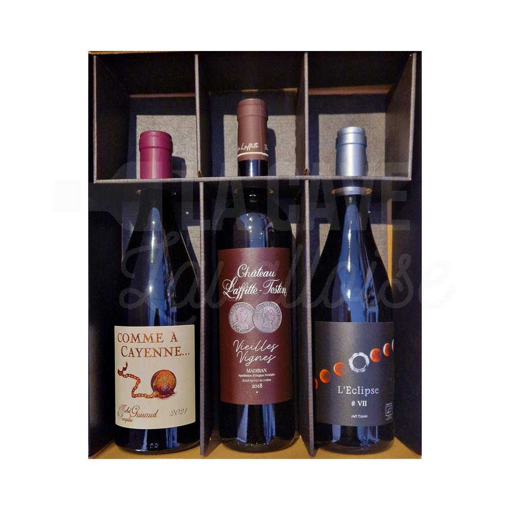 coffret vins prestige, 2, 3, 4, 6, blanc, rosé, rouge, personnalisé, original, idée cadeau, anniversaire, retraite, caviste, cave, récoltant, vignerons, grand cru, découverte, bordeaux, côtes du rhône, loire, languedoc, sud-ouest, bourgogne, alsace, cahors, ventoux, fronton, gascogne, provence, bordelais, malbec, pinot noir, chenin, sauvignon, chardonnay, cabernet, Fer Servadou, Folle noire, corbières, manseng, viognier, syrah, muscat, vermentino, vacqueyras, gigondas, grenache, ugny, carignan, gamay, cinsault, sémillon, bourboulenc, montravel