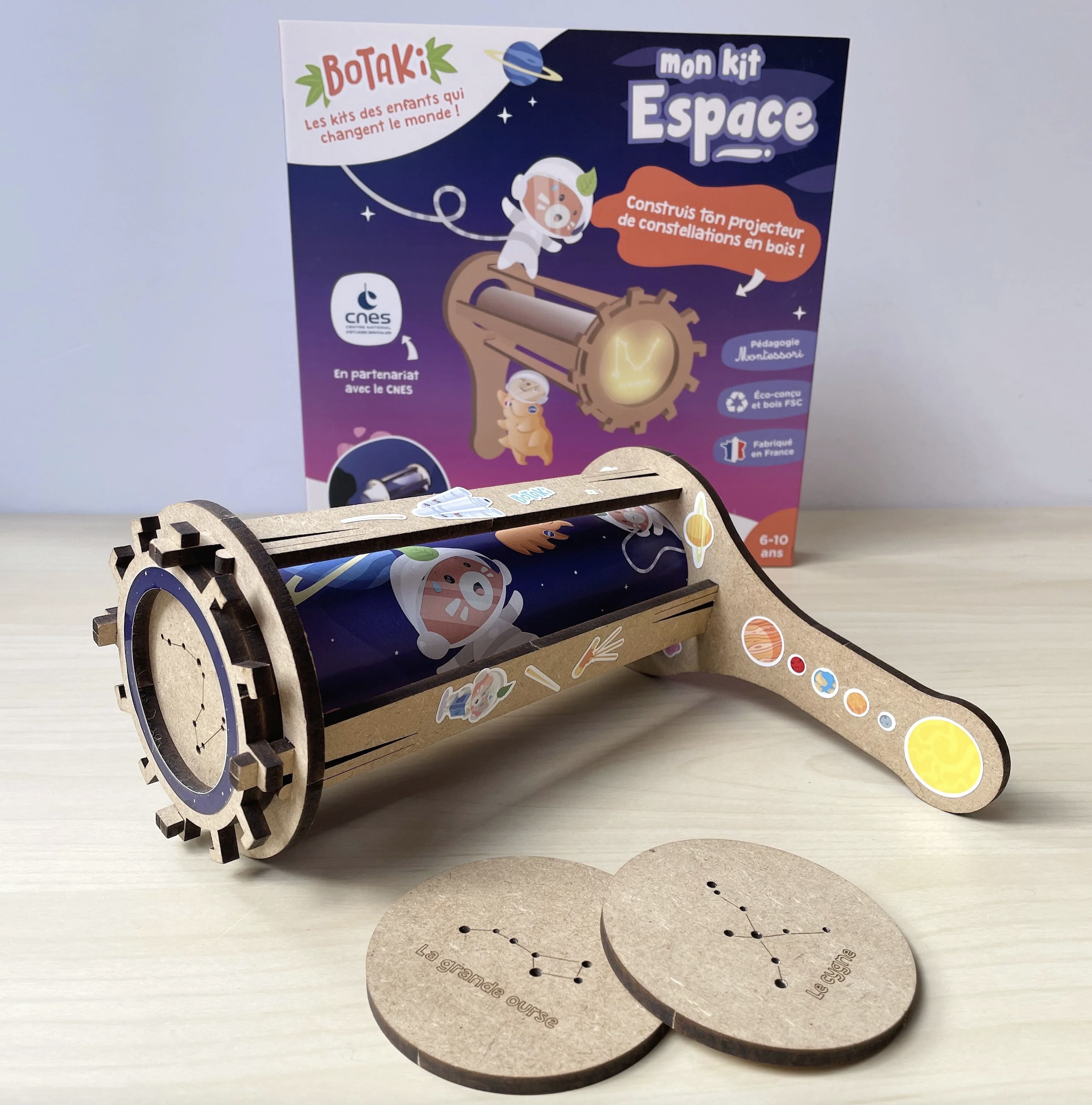 Devenez de véritables astronautes en herbe grâce à ce kit en bois, construisez votre projecteur pour observer les étoiles et constellations.