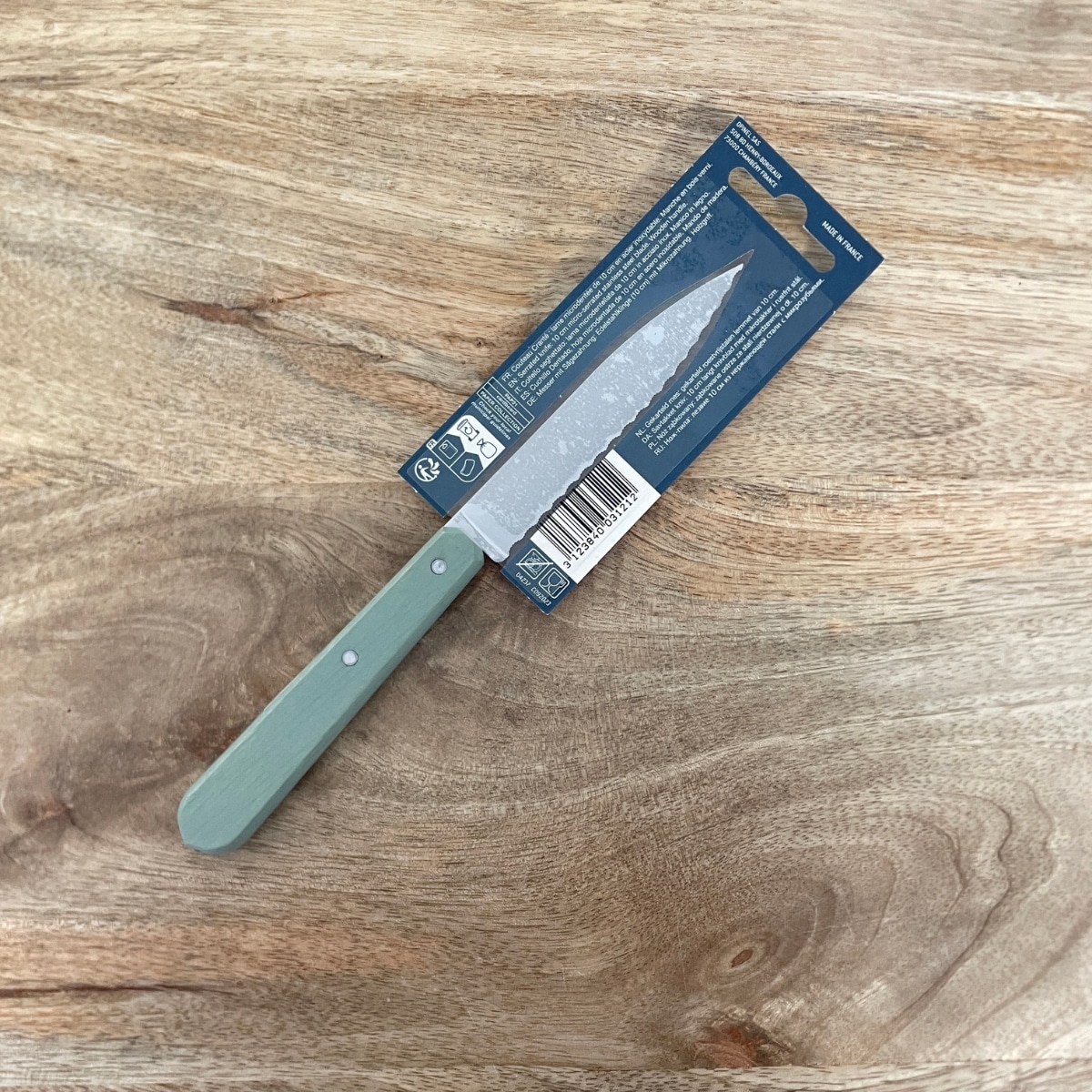 Précis et efficace, le couteau d’office cranté OPINEL n°113 est l’outil indispensable pour une découpe nette et sans effort. Sa lame microdentée en acier inoxydable de 10 cm assure une coupe impeccable des tomates, légumes et œufs durs, même les plus délicats. Son manche en bois de charme certifié PEFC, teinté d’une douce couleur sauge, s’inspire de paysages lointains. Conçu pour allier esthétisme et performance, ce couteau fabriqué en France vous garantit confort et durabilité au quotidien.