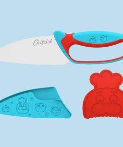Les enfants peuvent désormais couper les aliments en toute sécurité ! Le couteau Chefclub Kids est doté d’un manche ergonomique qui offre une excellente prise en main, que l’enfant soit droitier ou gaucher. Il comprend également un protège-doigts adapté aux petites mains et une lame à bout rond pour une sécurité accrue . Un couteau de cuisine innovant adapté aux besoins des petits cuistots !