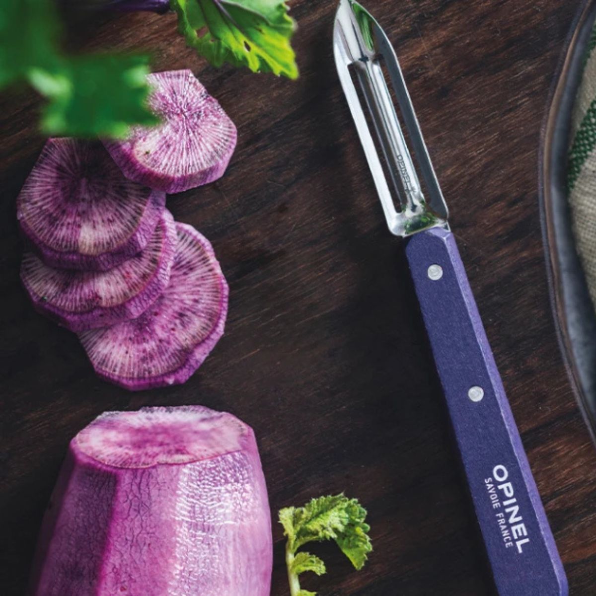 Apportez une touche d’authenticité et de performance à votre cuisine avec le couteau éplucheur N°115 OPINEL. Doté d’une lame en acier inoxydable de 6 cm, il garantit un tranchant précis et durable, parfait pour peler facilement vos fruits et légumes. Son manche en charme certifié PEFC, issu de forêts éco-gérées du Jura et du Vercors, allie élégance et écoresponsabilité. La teinte violette, inspirée des paysages naturels, ajoute une note chaleureuse à cet outil indispensable. Léger, maniable et fabriqué en France, cet éplucheur est conçu pour résister à l’épreuve du temps et des usages quotidiens, tout en apportant une touche esthétique à vos préparations culinaires.
