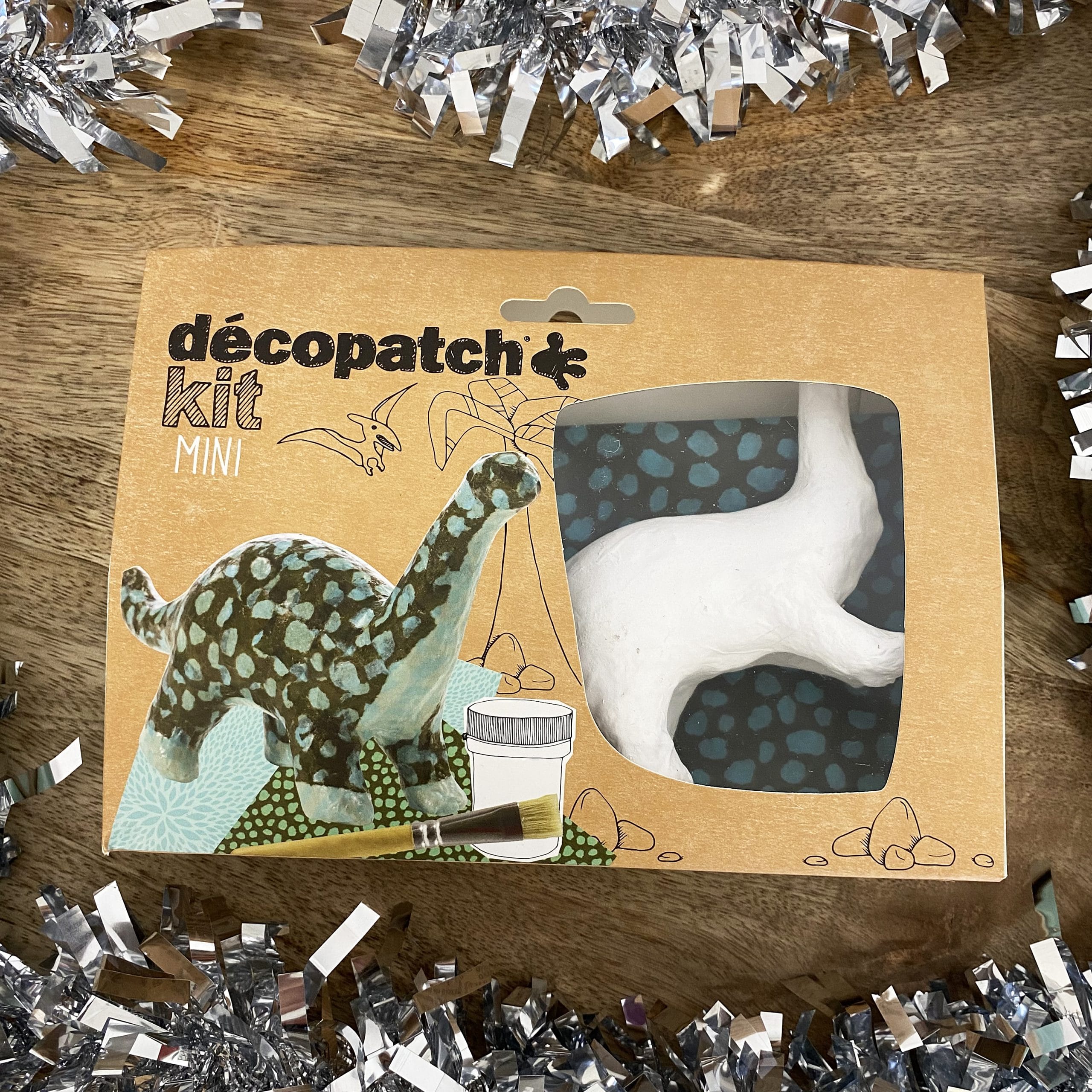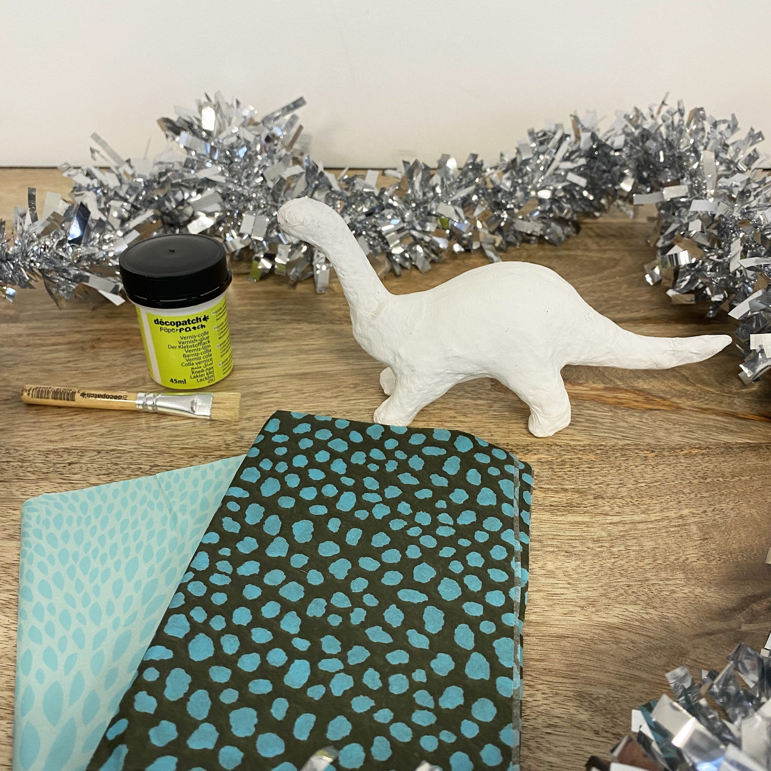 Kit dinosaure en papier mâché à customiser avec la technique du décopatch.