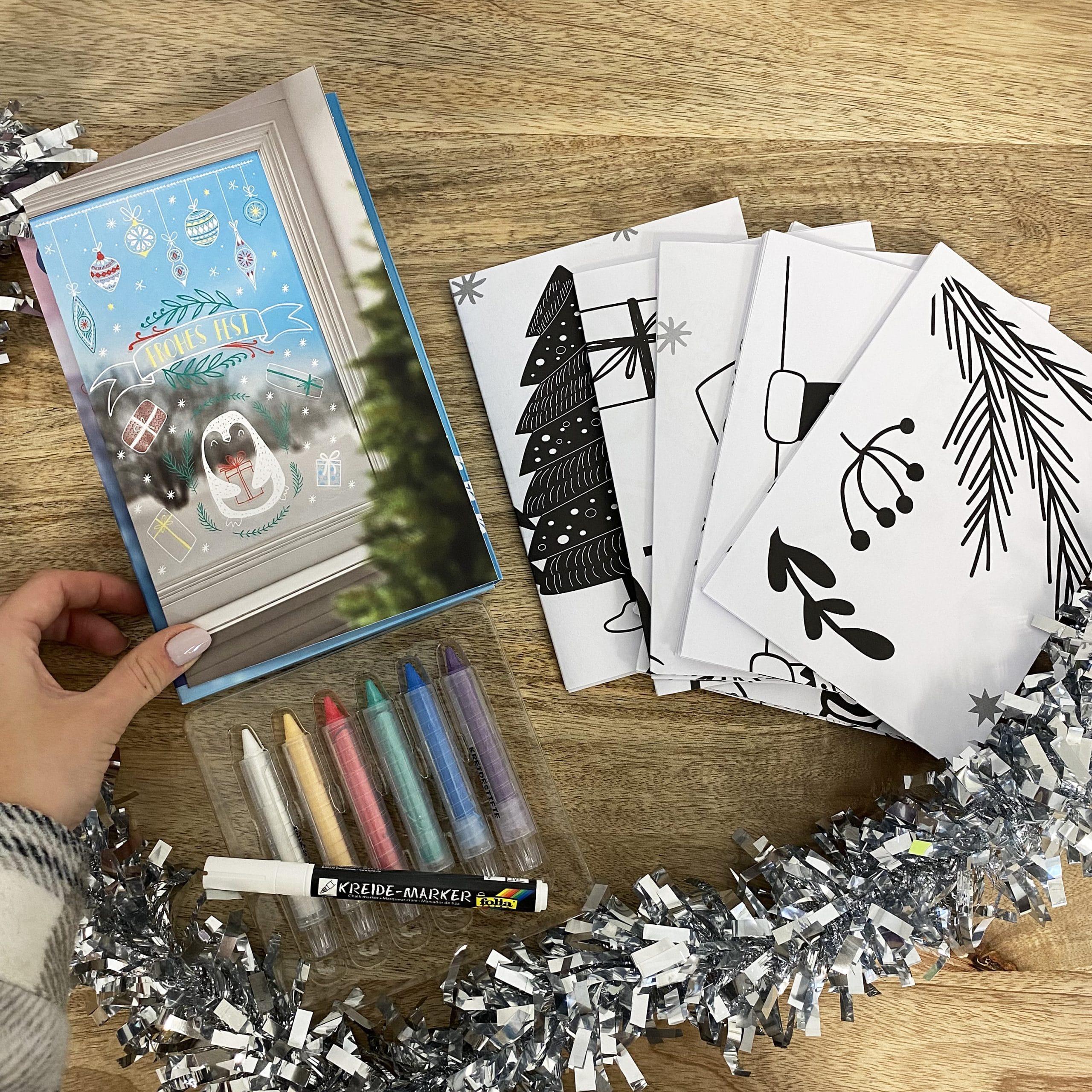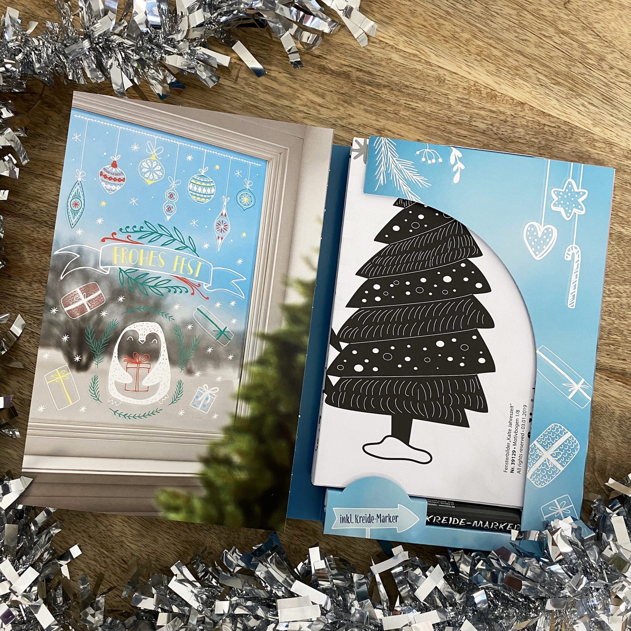 Dans ce kit vous trouverez des modèles de décoration à reproduire ainsi que de nombreux feutres pour fenêtre blanc et de couleurs.