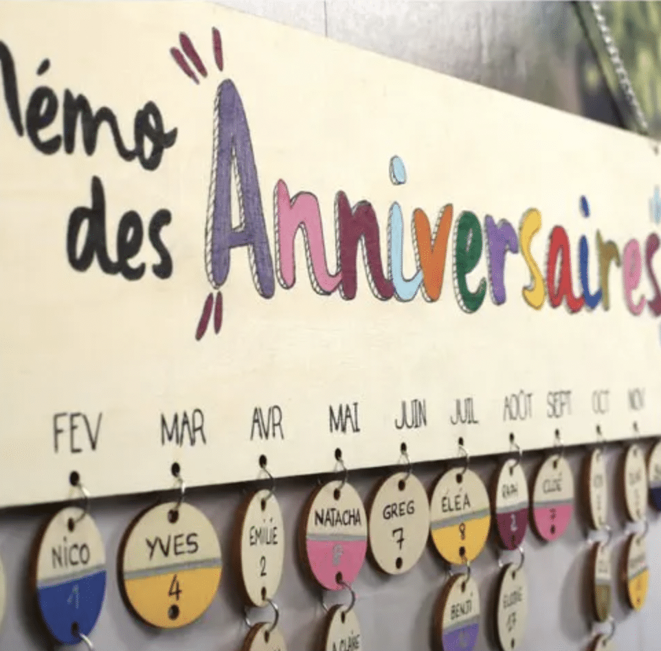 - Ensuite, il vous suffit de renseigner sur chaque rond le nom de la personne ainsi que le jour de son anniversaire puis de l’accrocher sous le bon mois