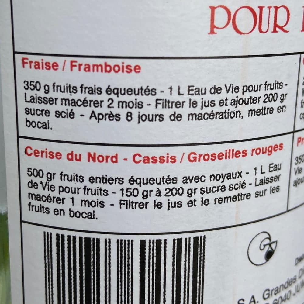 Eau De Vie pour fruits -1 litre – 40% vol