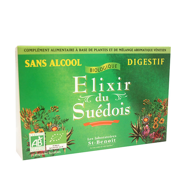 L’élixir du Suédois sans alcool est connu depuis des siècles. Il y a longtemps, les herboristes utilisaient la thériaque (mélange aromatique vénitien) pour sa saveur amère. Cette formule est inspirée de la recette traditionnelle de l’Elixir du Suédois. La bardane aide à faciliter la digestion et soutient la fonction hépatique.