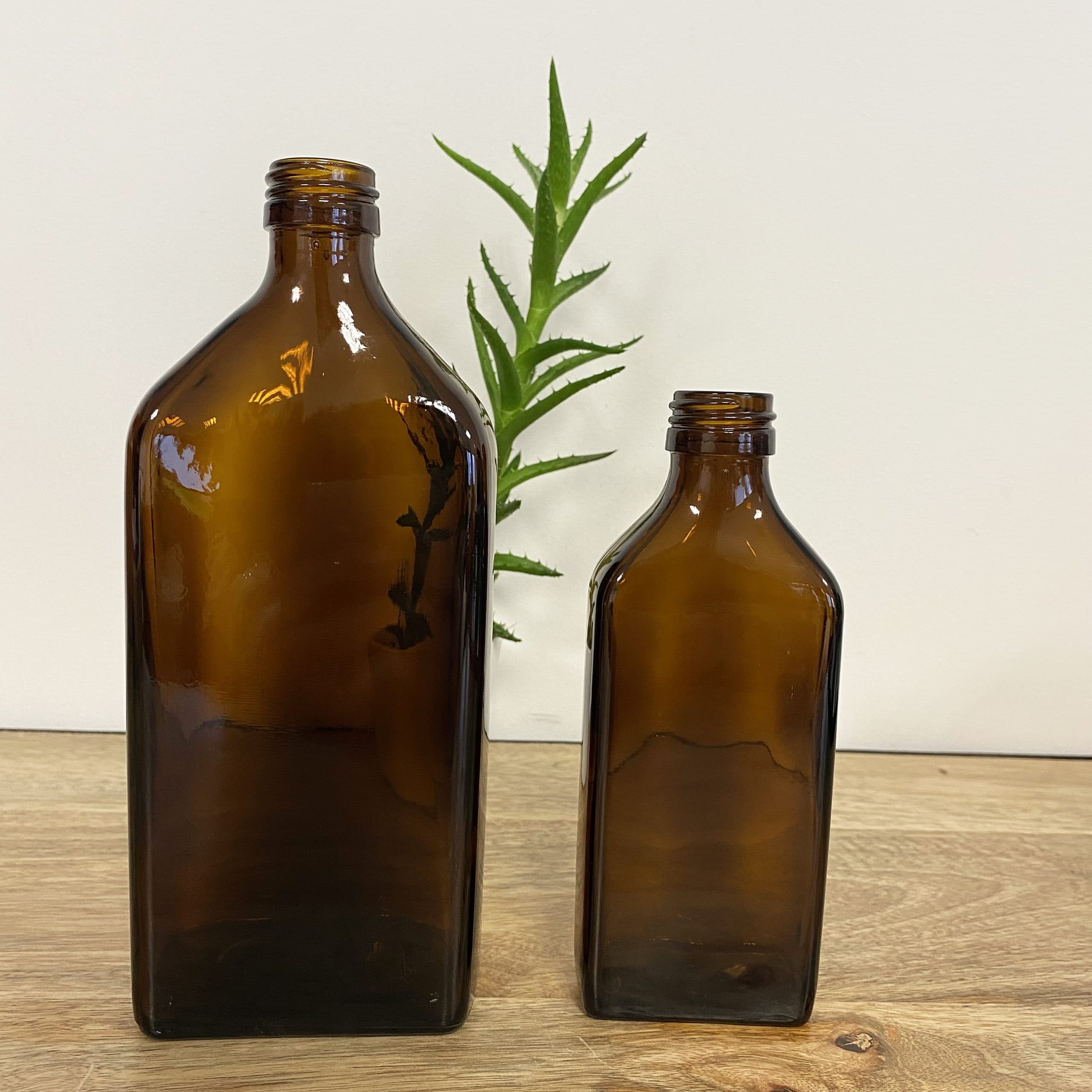 Caractéristiques du flacon rectangle en verre ambré :