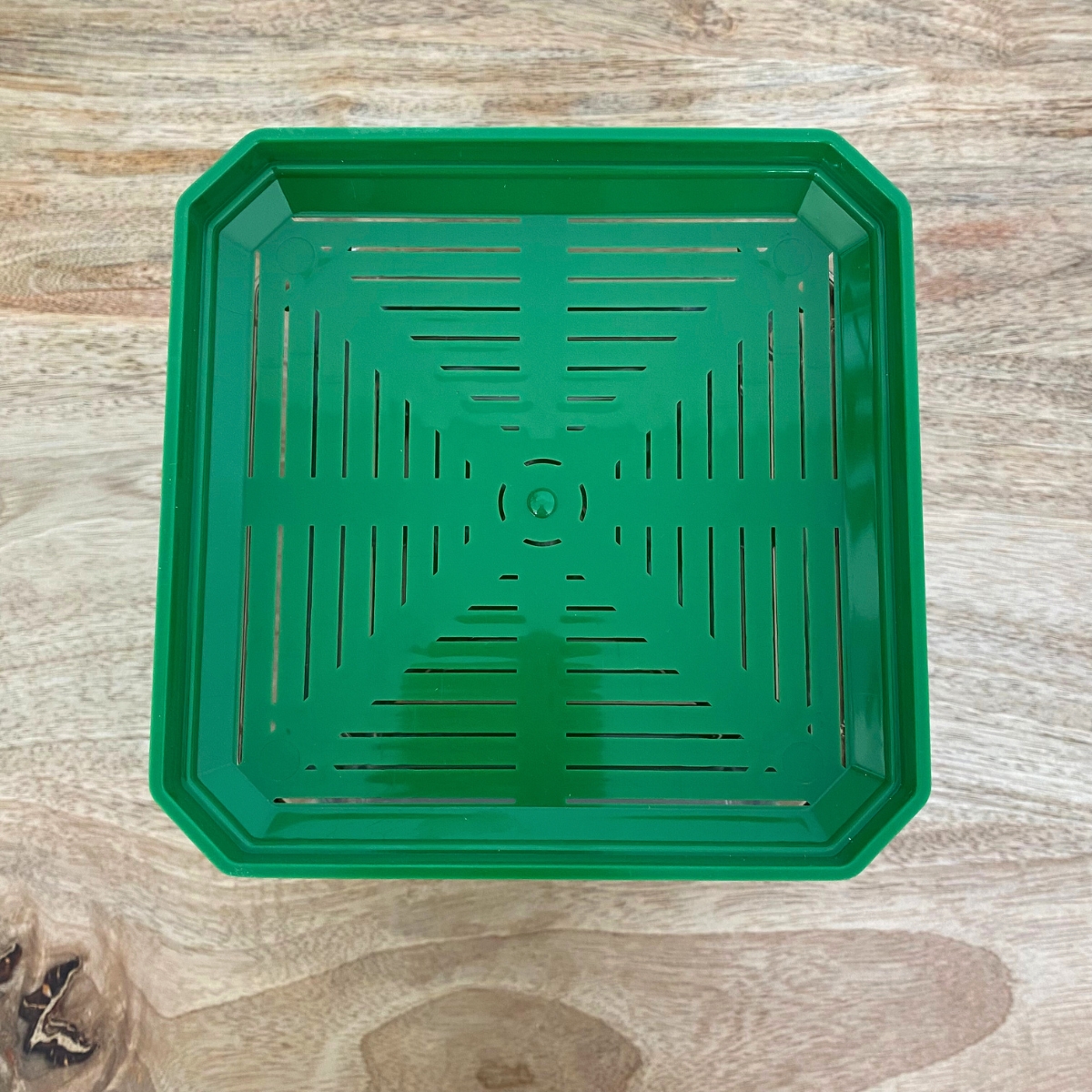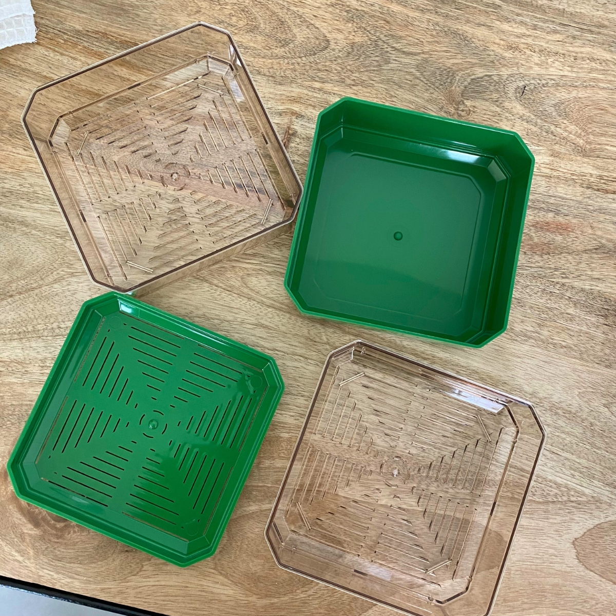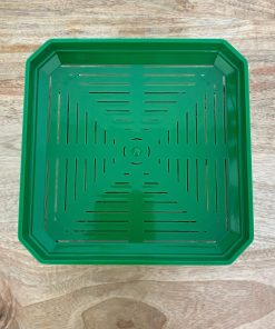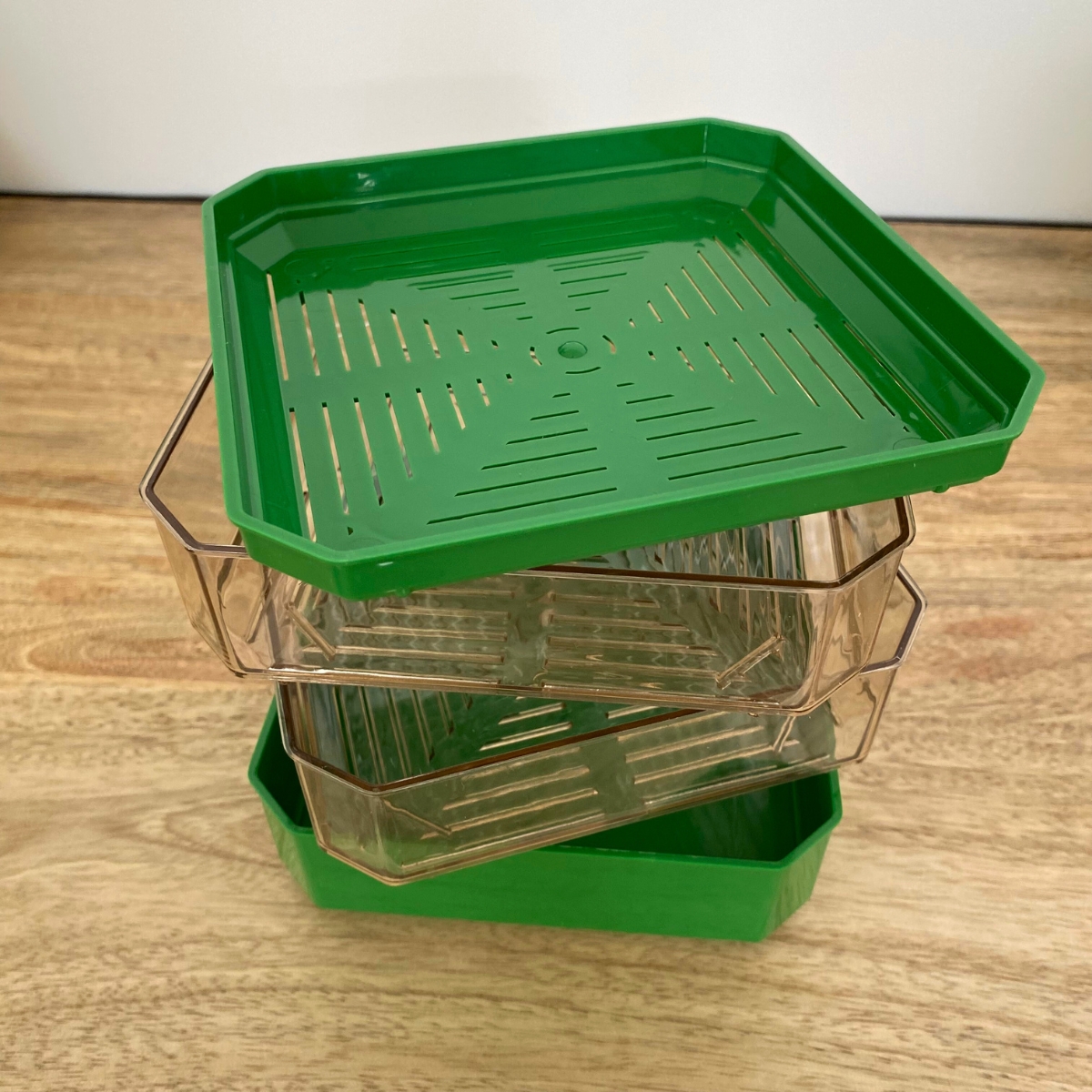 - A l’issu du trempage, au-dessus d’un évier, versez les graines dans un plateau de germination. Puis rincez-les à l’eau claire. Posez le plateau en quinconce sur son égouttoir.