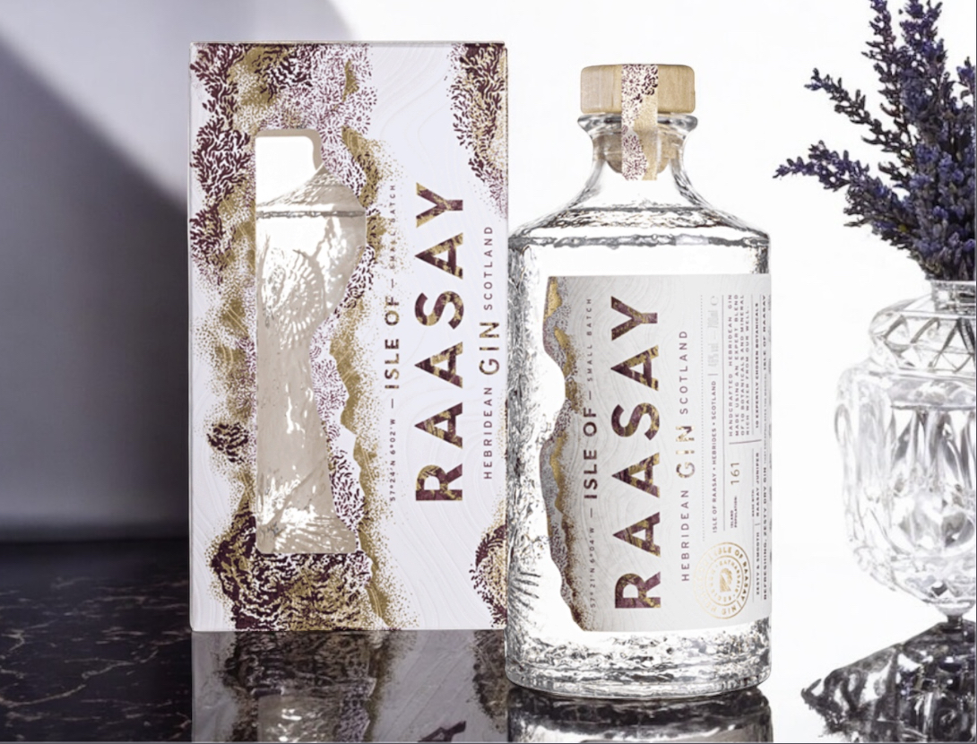 La bouteille de ce gin écossais reflète la géologie impressionnante de l’île et la recette combine dix plantes qui sont choisies