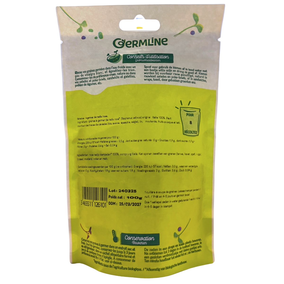 • Biologiques et naturelles : 100% graines de radis rose issues de l’agriculture biologique.