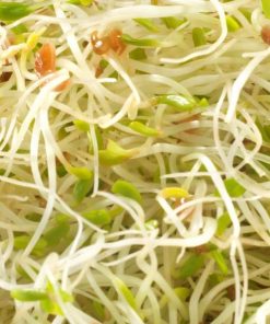 Ingrédients: 95% graines à germer d’alfalfa (Medicago sativa), 5% graines à germer de roquette (Eruca sativa), issues de l’agriculture biologique.