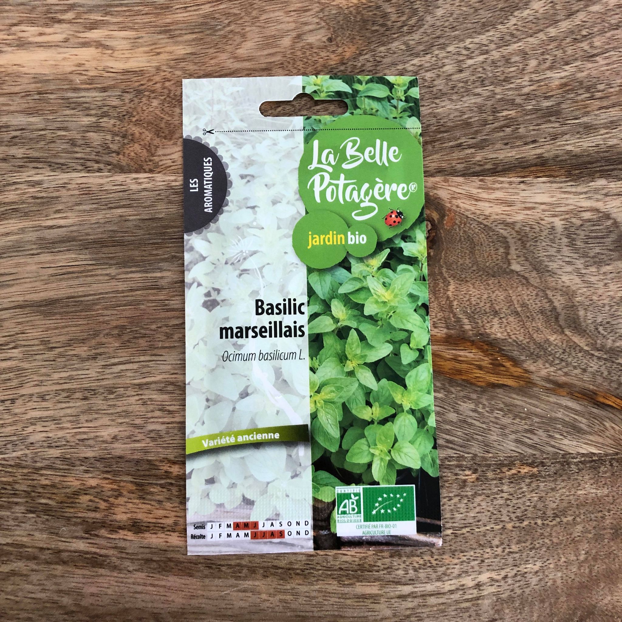 BASILIC MARSEILLAIS : Basilic aux feuilles de taille moyenne et d’un vert plus ou moins clair, parfumée au goût fin adaptée pour la culture en pot.