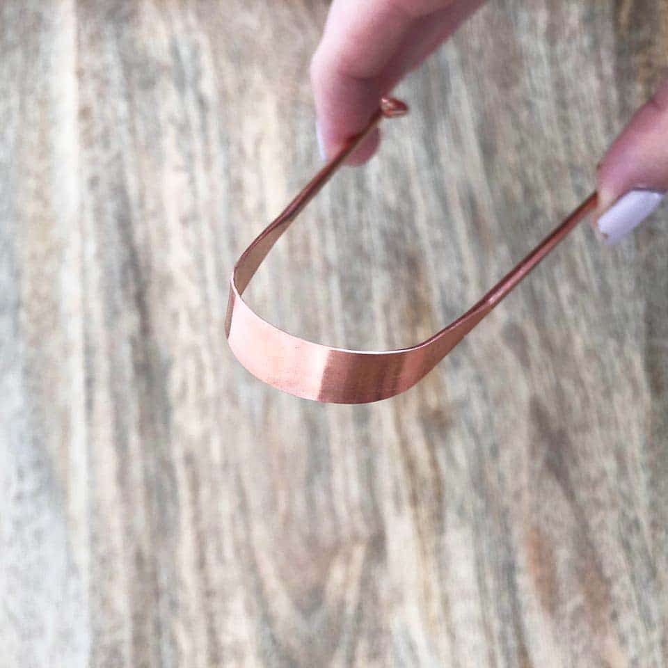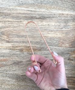 Originaire d’Inde, le gratte-langue en cuivre est idéal pour enlever les résidus blanchâtres présents sur la surface de la langue