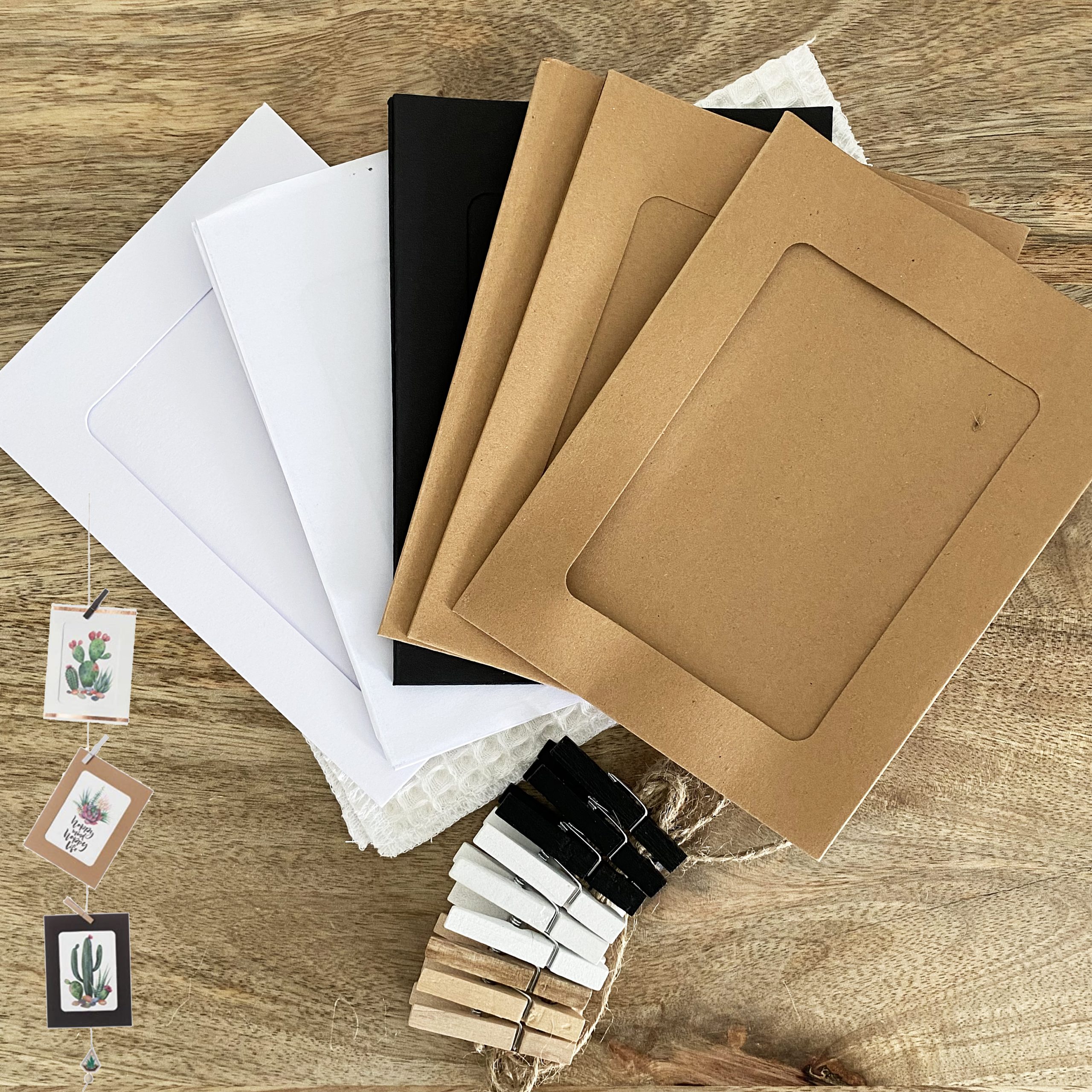 - 9 cadres de couleurs : blanc, noir, nature, pour format A6 (10×15 cm), taille du cadre: 155 x 115 mm, dimensions ouverture: 110 x 75 mm