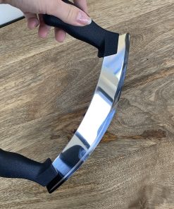 Hachoir en forme de demi-lune avec deux poignées pour une bonne prise en main de l’outil.