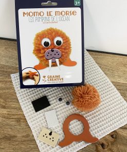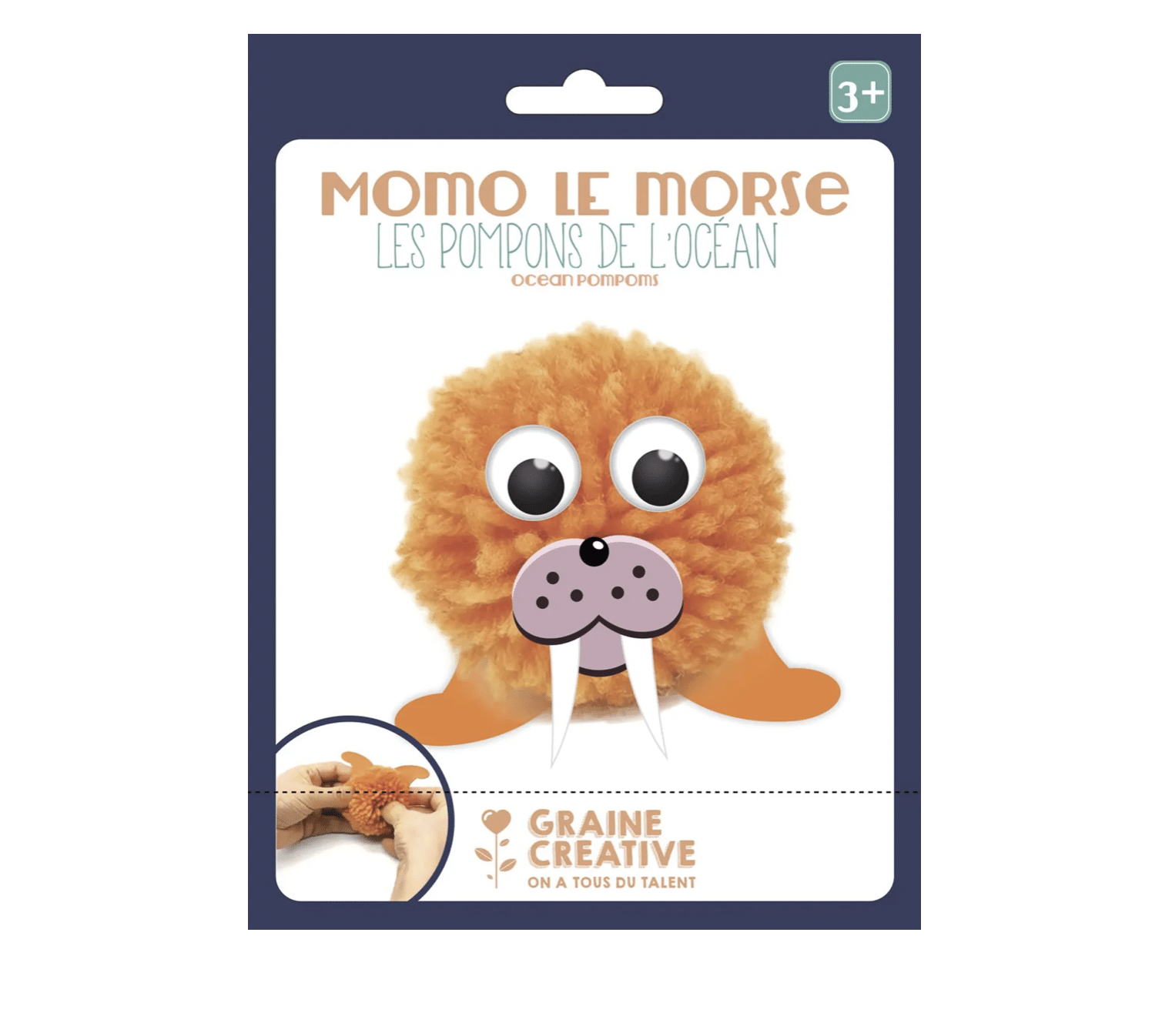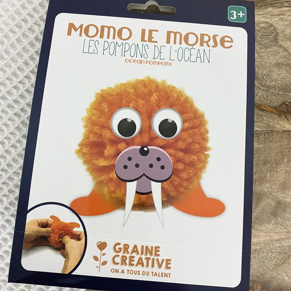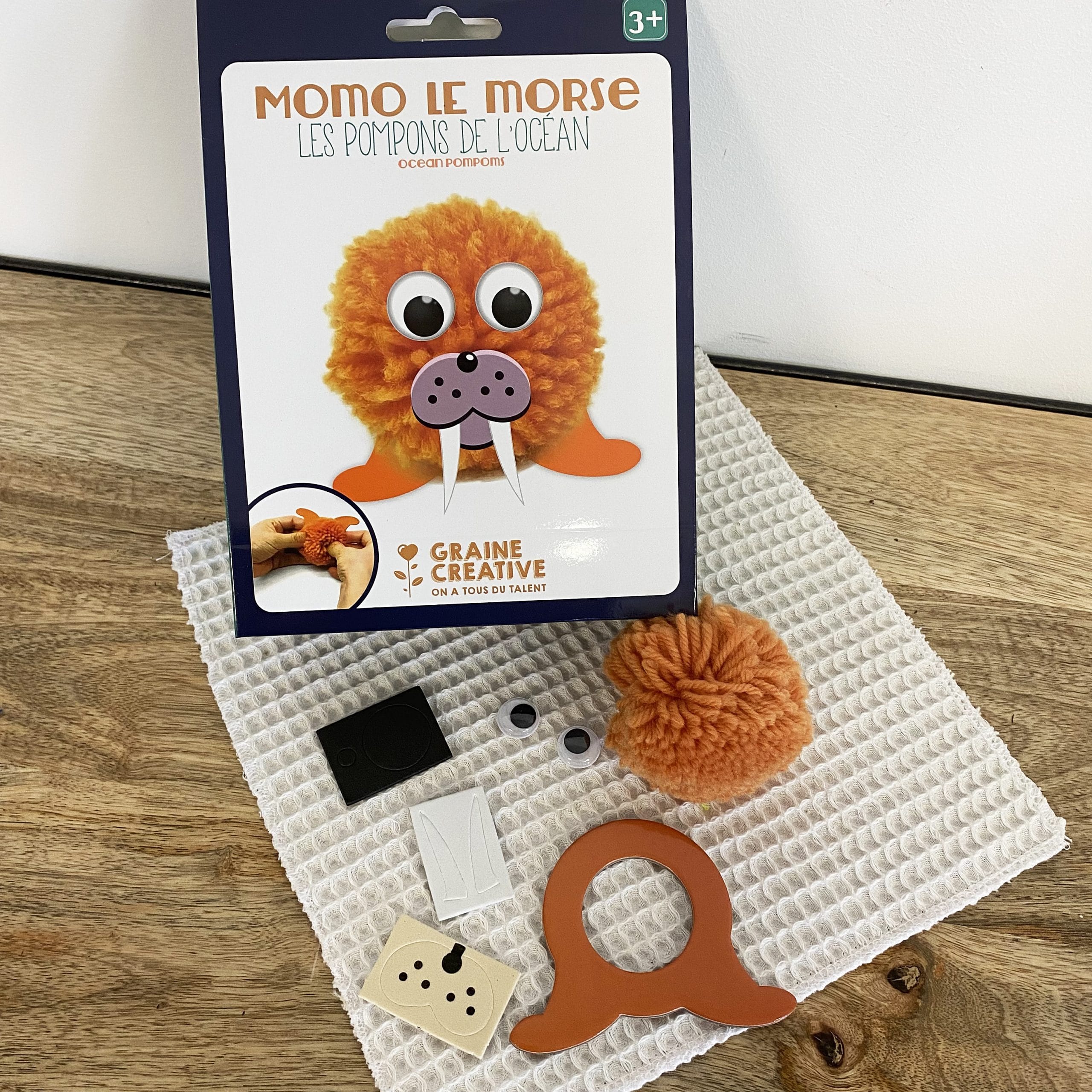 Petit kit pour fabriquer un adorable morse en pompon, partenaire de folles aventures.