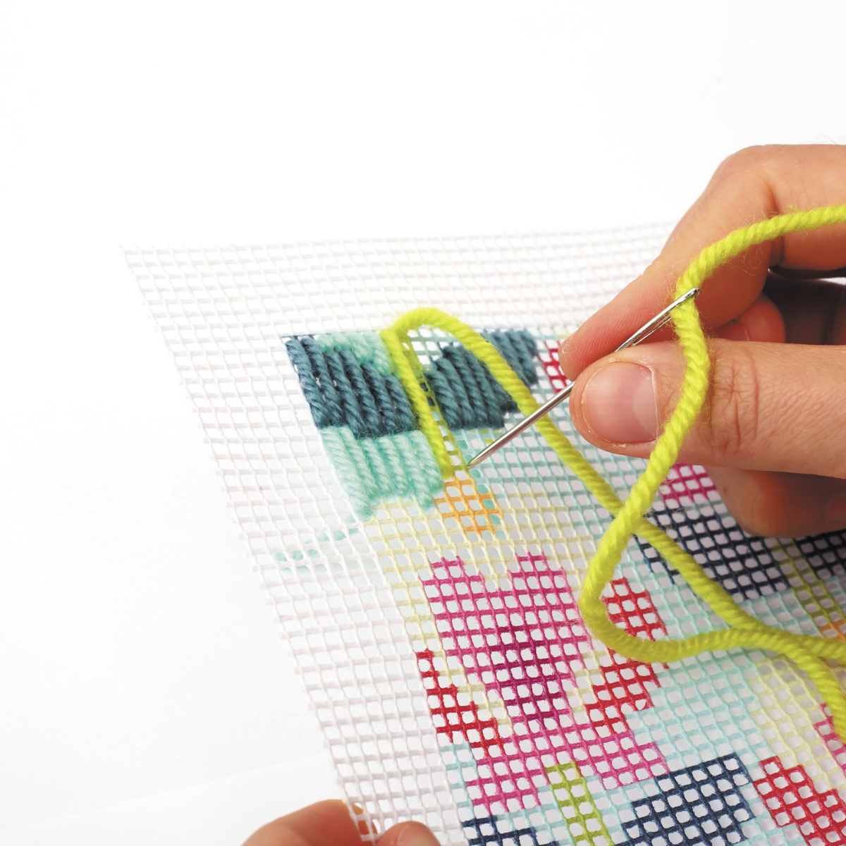 Le CANVA est une toile préimprimée et quadrillée semi-rigide sur laquelle il va falloir venir mettre plusieurs points de couleur à l’aide des fils et des aiguilles.