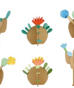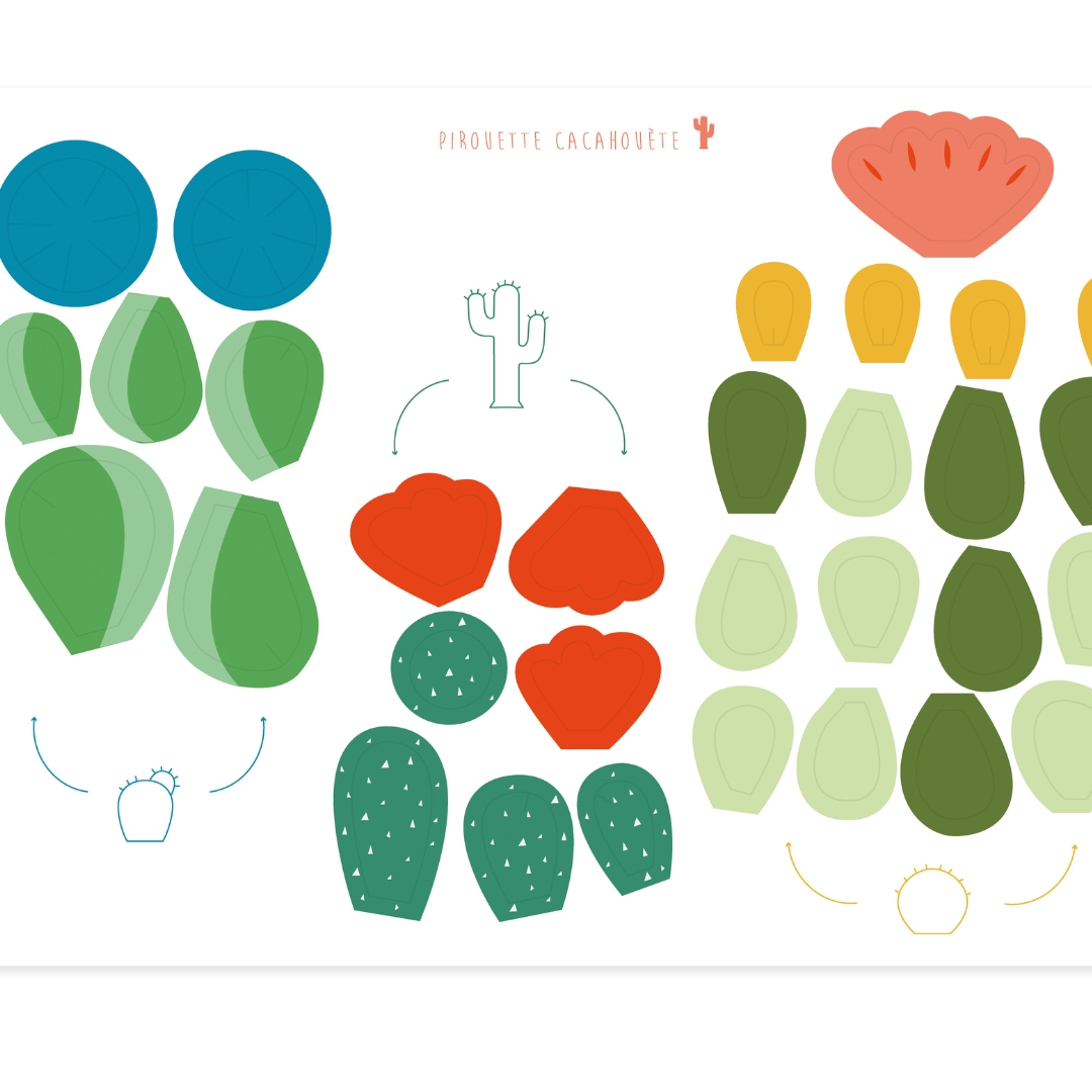 En assemblant minutieusement le papier et le carton, par simples emboitages, 6 jolis cactus colorés prendront forme et viendront décorer ta maison !