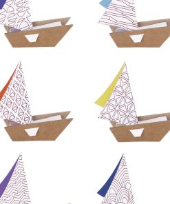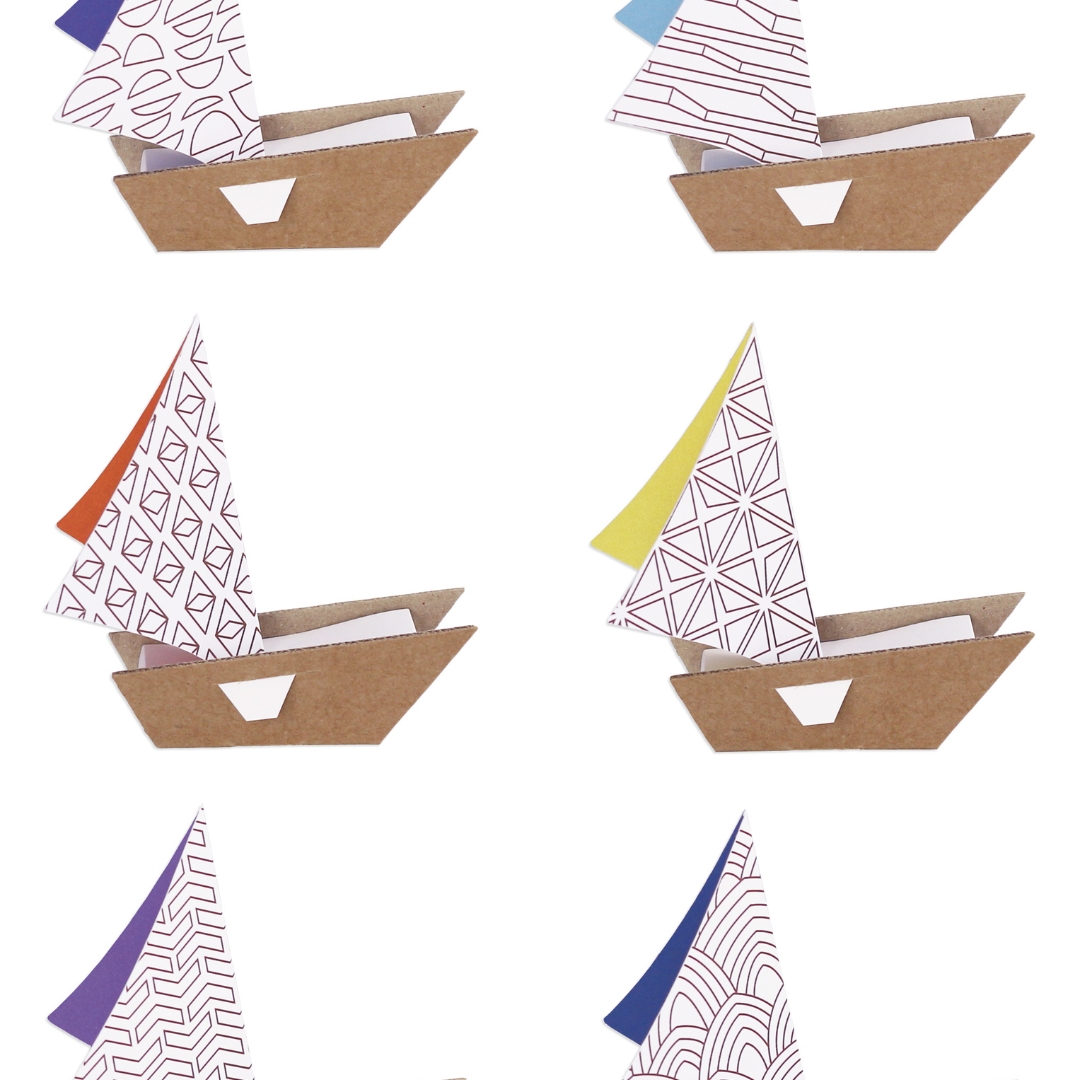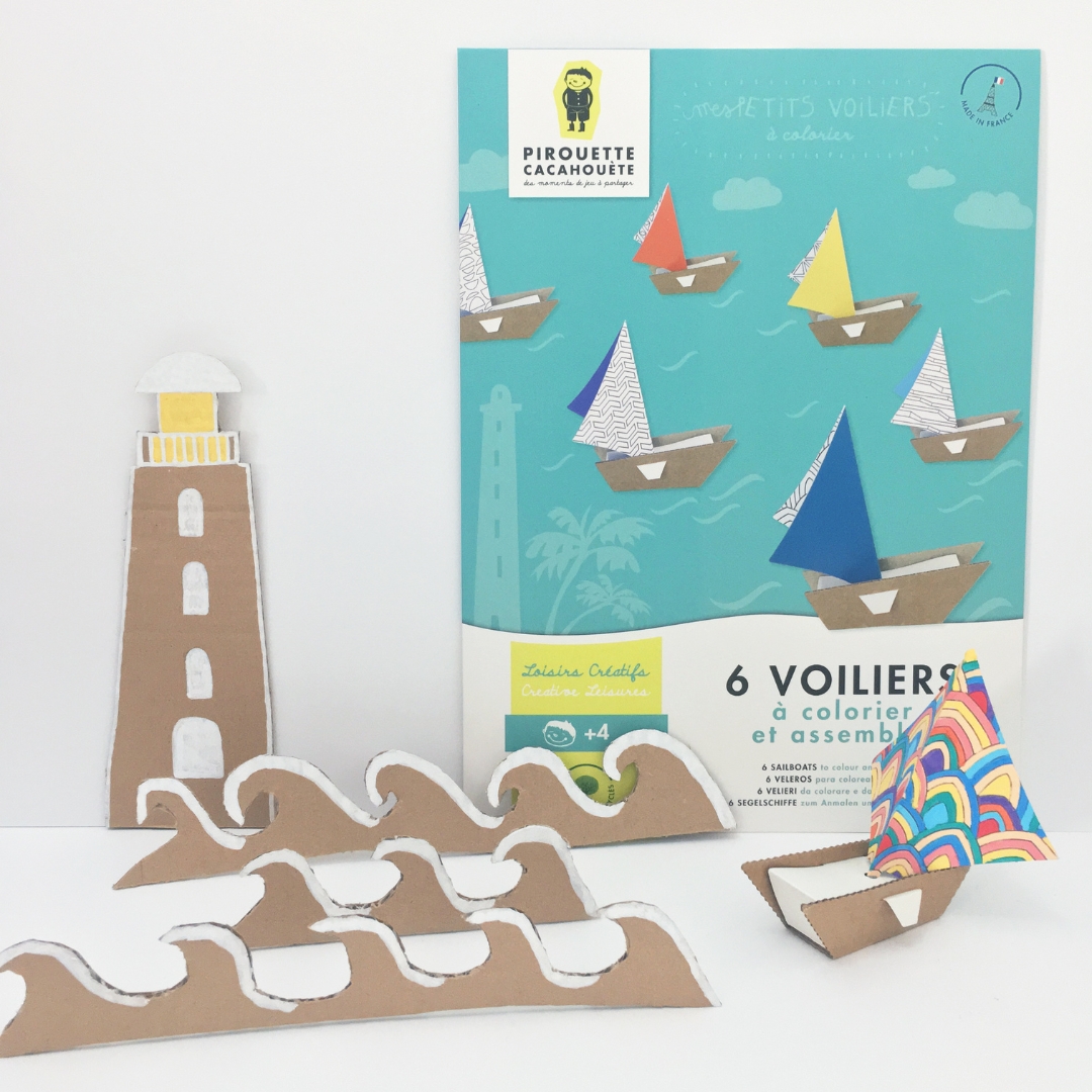 Un assemblage simple et ingénieux pour donner vie à 6 petits voiliers en papier et carton prêts à être coloriés ou peints.