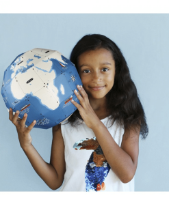 A base de carton, le globe terrestre en 3D va servir à la fois d’élément de décoration mais également d’apprentissage.