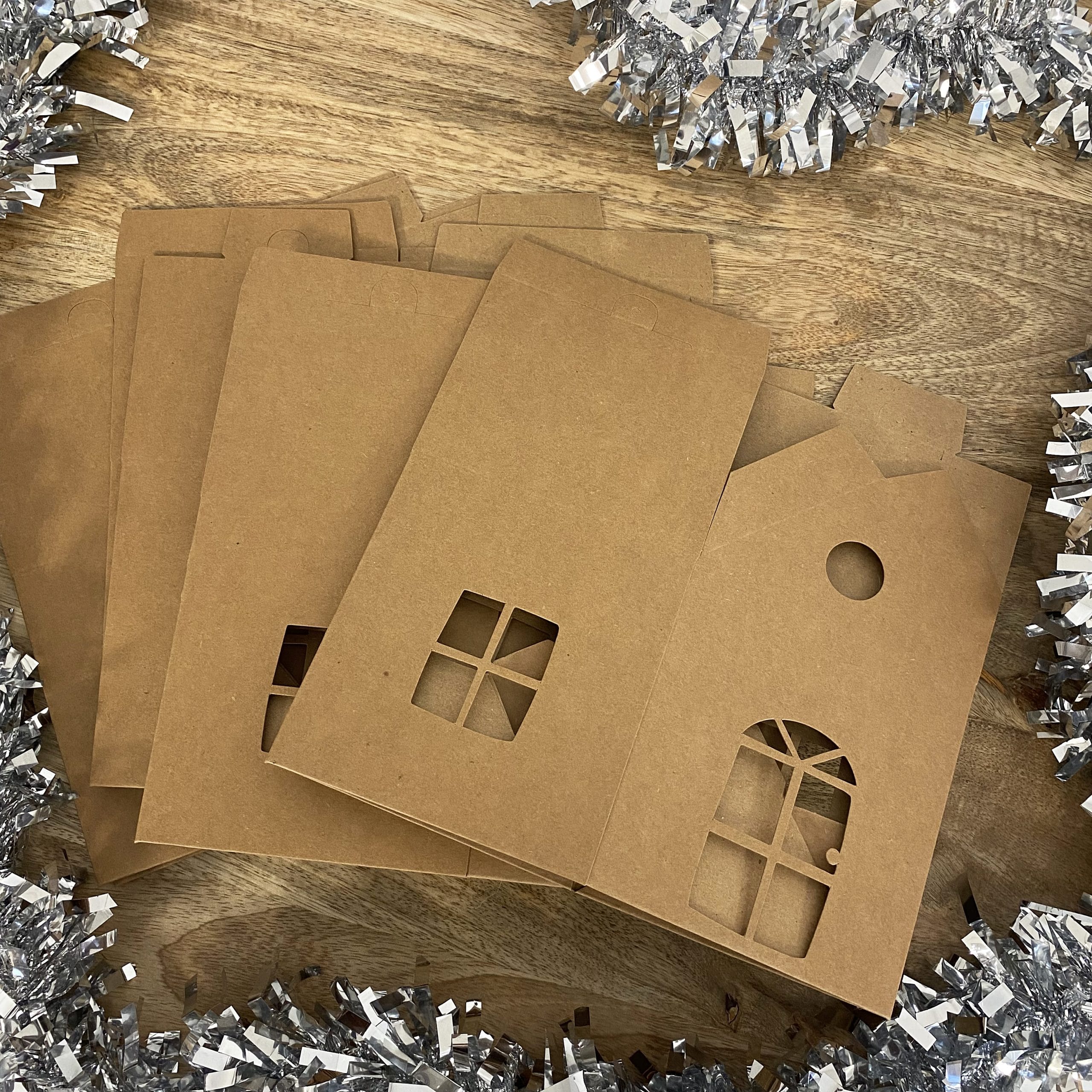 - 6 maisonnettes en carton kraft, 330-350 g/m2, prédécoupé, non imprimé, 110 x 110 x 190 mm