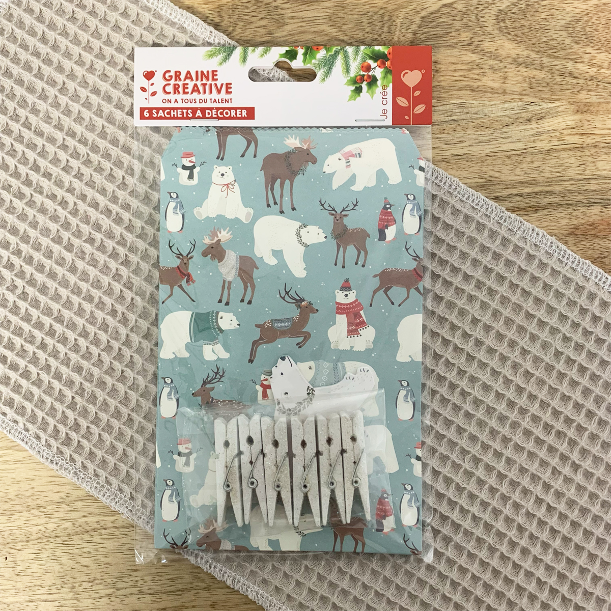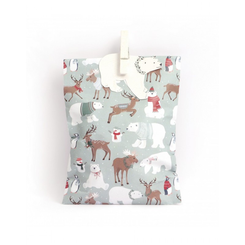 - 6 sachets en kraft à imprimés animaux de Noël