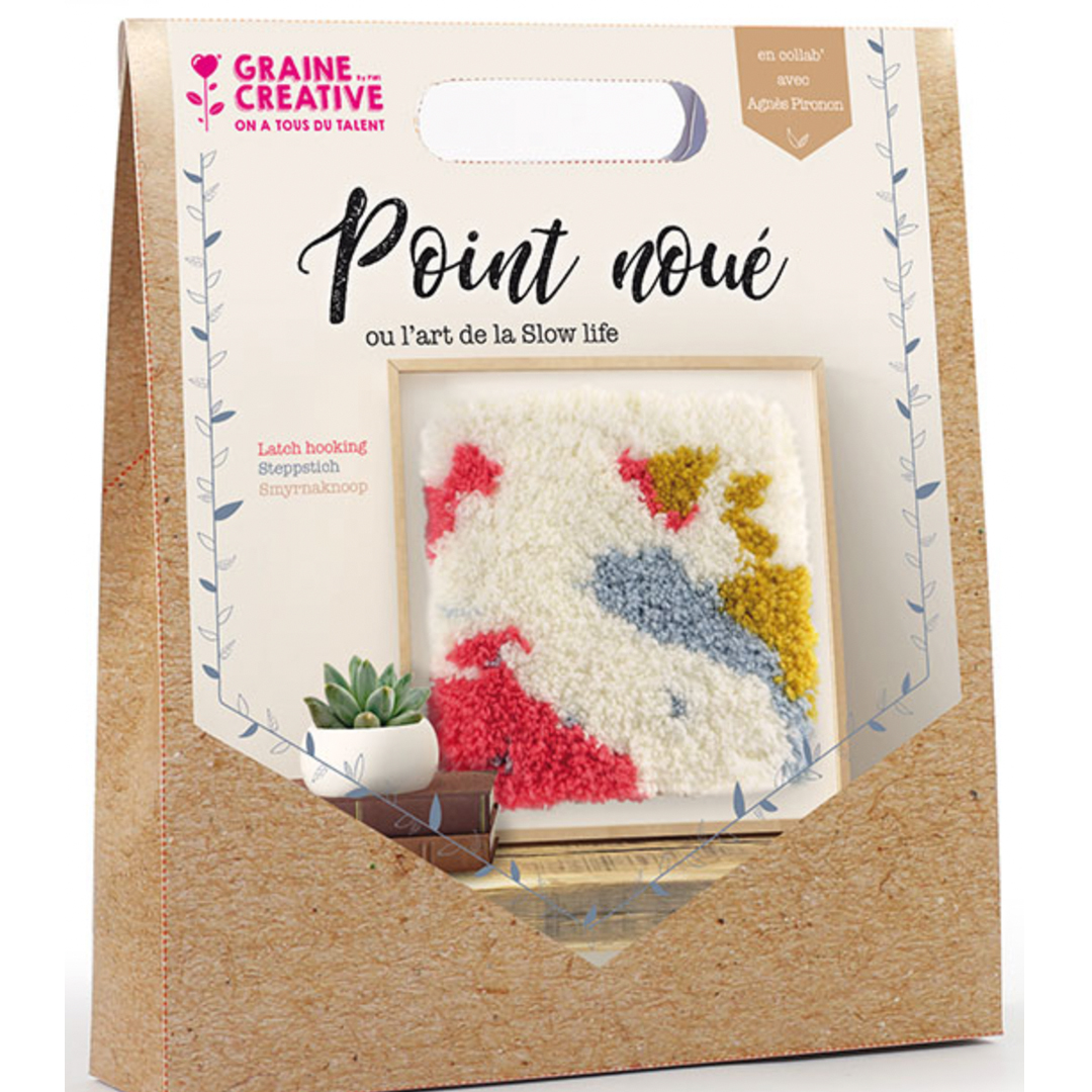 - Le crochet, la toile à canevas et des fils de laine.