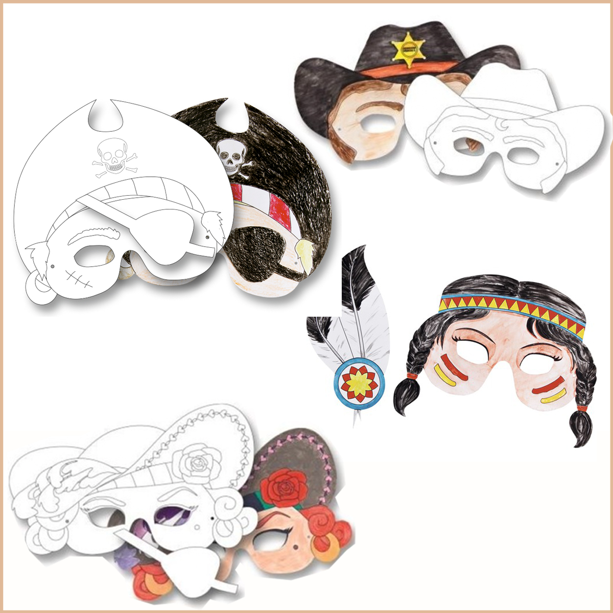 Ce kit de masques à thèmes en carton à confectionner est l’allié de jeu idéal des enfants ! 6 masques différents avec un thème pour chacun d’entre eux. Pirates, cowboys… à vous de décider !